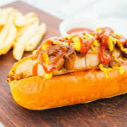 Salchicha de pavo, mayonesa, catsup, mostaza, tomate, cebolla caramelizada, tocino y salsa habanera.