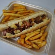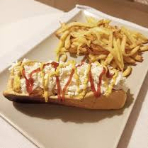 Papas frescas, catsup, mayonesa, queso, salchicha y salsa habanera.