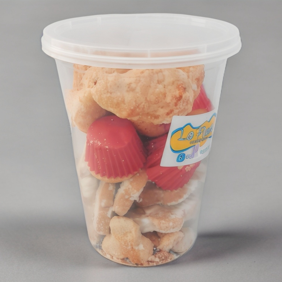 Bote con piezas de galletas de mantequilla, mini panquecitos y mini cuernitos de hojaldre