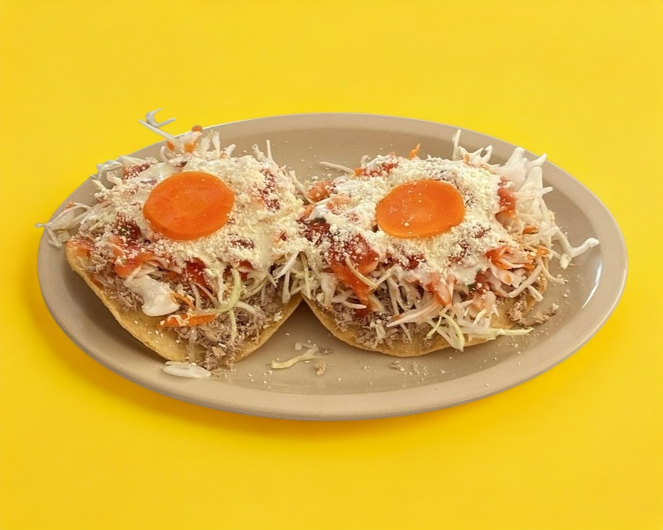 Orden de 2 pz de Tostadas de Res, acompañadas de repollo, salsa, creso y crema
