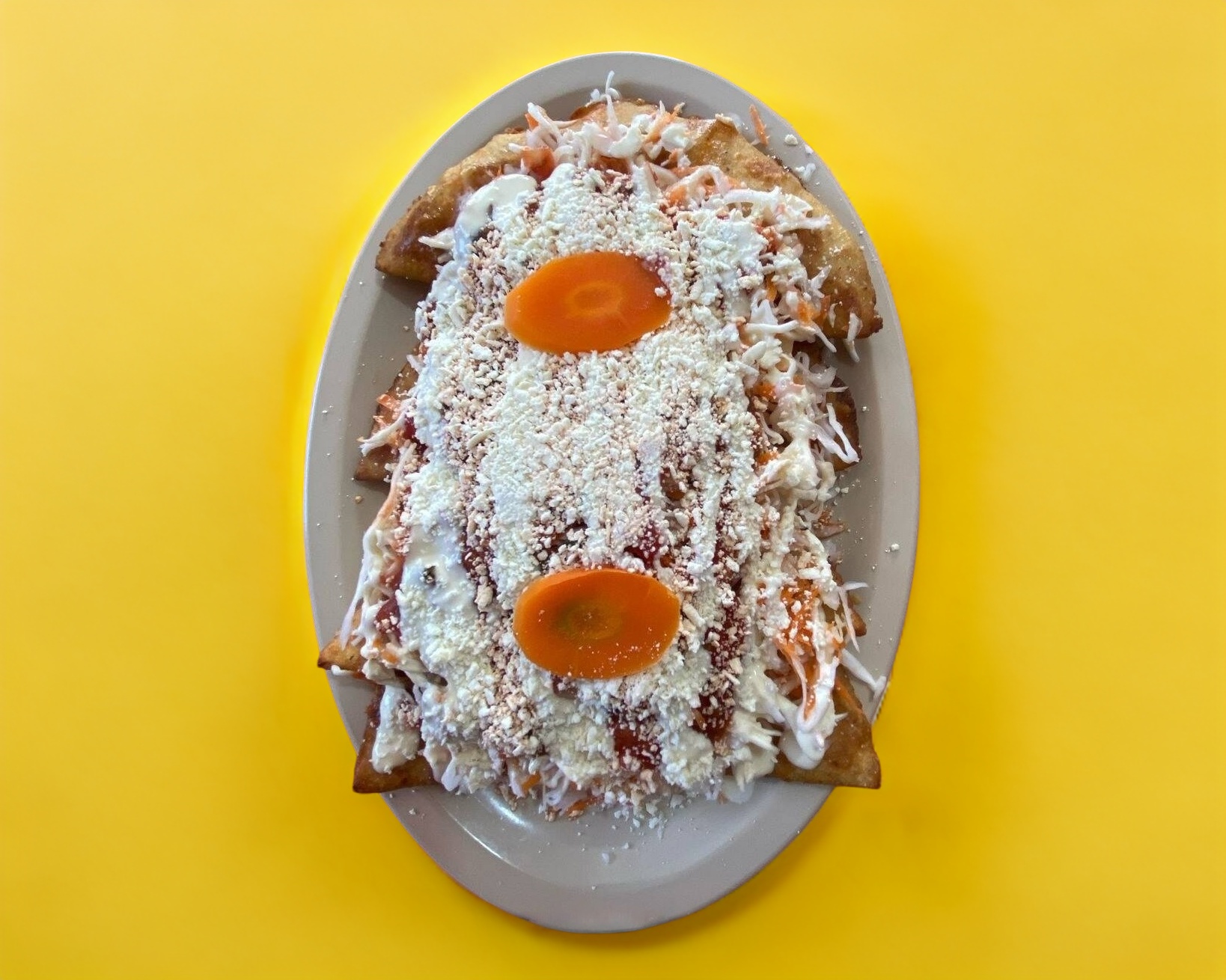 Antojito tipico de Tonalá, Chiapas, que es un pan bimbo, con pollo deshebrado, tomate, cebolla, zanahoria, huevo duro y bañadas en crema, una explosión de sabor