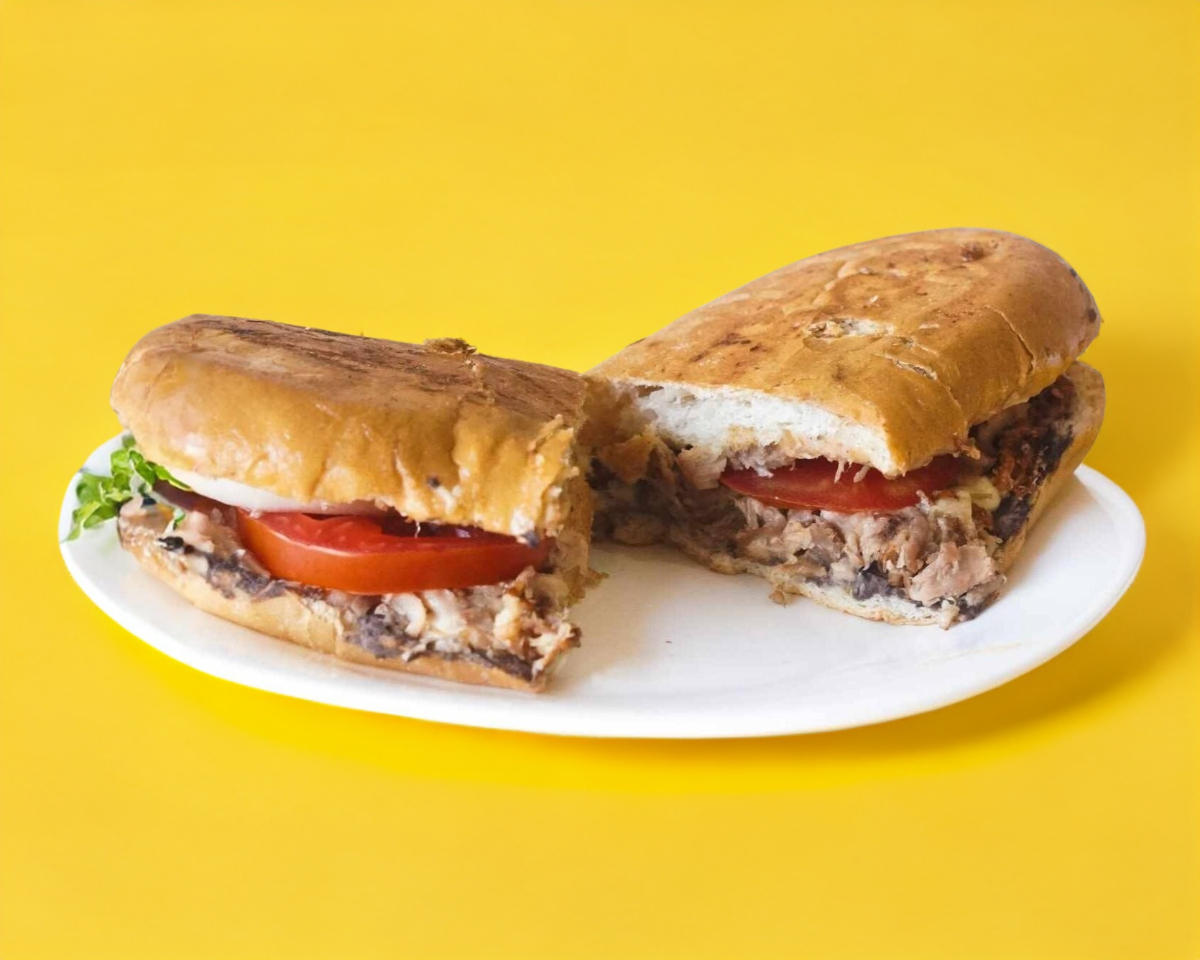 Con guiso de su elección, quesillo, queso amarillo, jamón, frijol, mayonesa, cebolla, aguacate y jitomate.