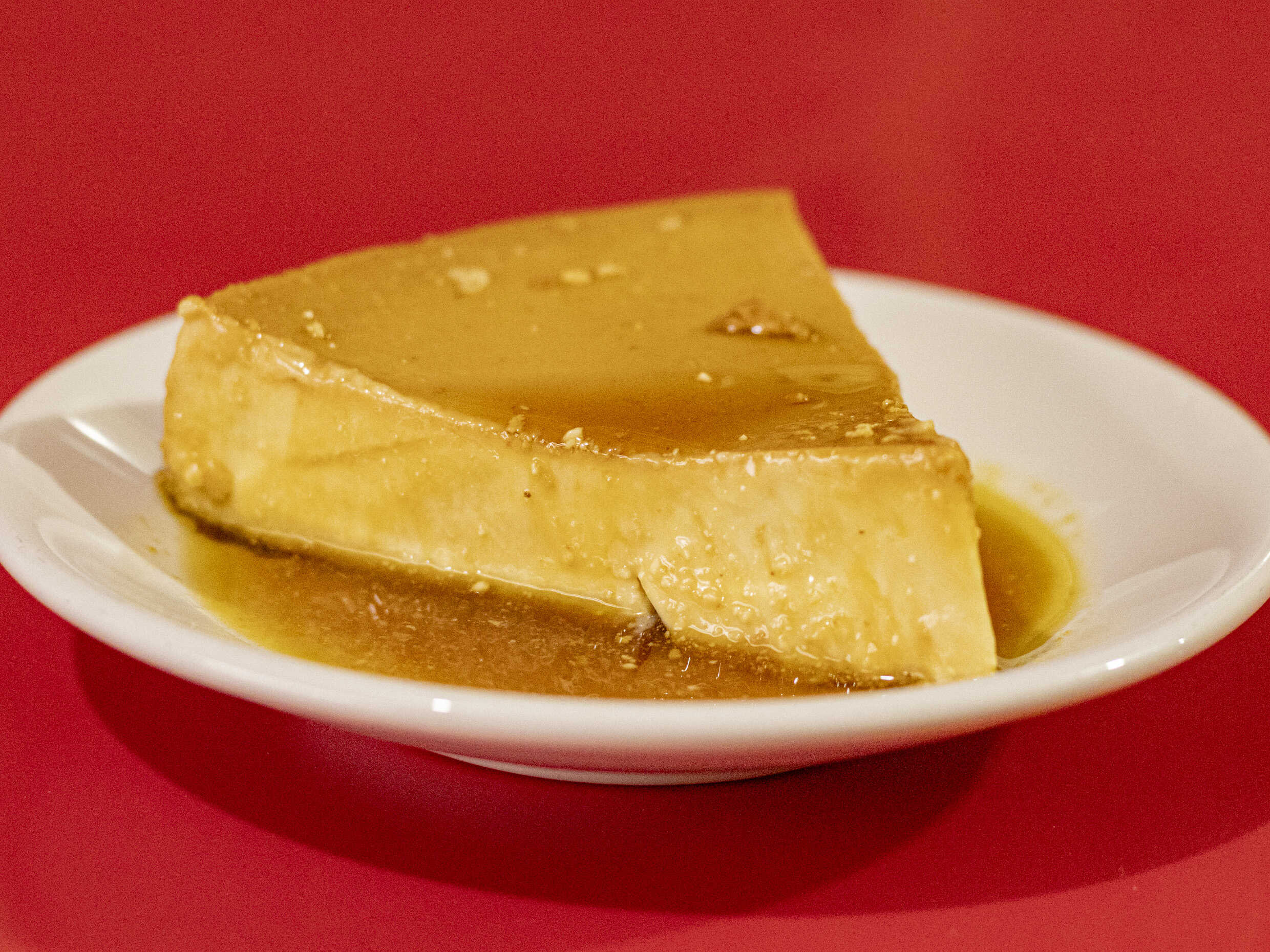 Postre cremoso de huevo, leche y caramelo.