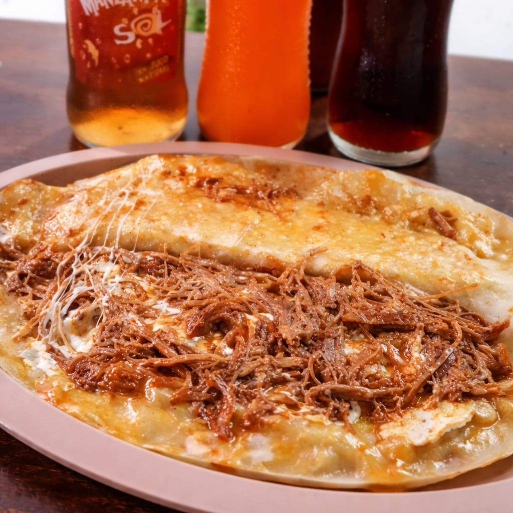 Deshebrada de Res*1 + chicharron guisado*1 + chorizo*1 + Bistec*1+pollo 1+ champiñones 1