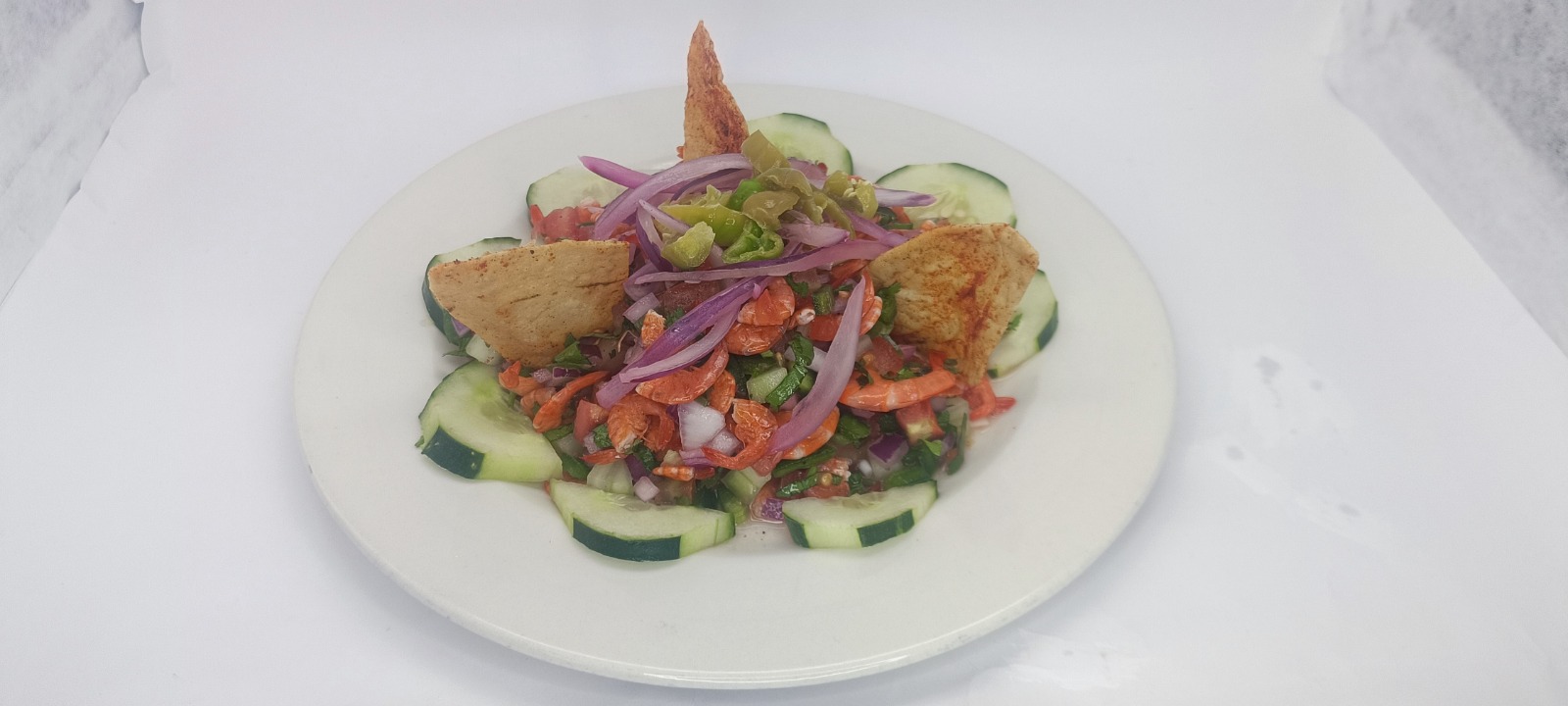 Deliciosa combinación de vetales con pulpa de camarón sazonado y preparado.