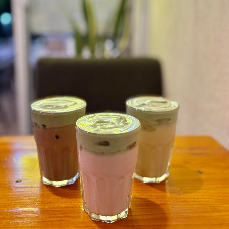FOAM DE MATCHA, LECHE SANTA CLARA DE SABOR A ELEGIR Y ESPRESSO