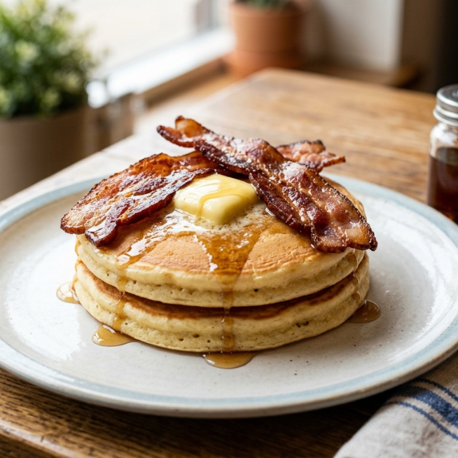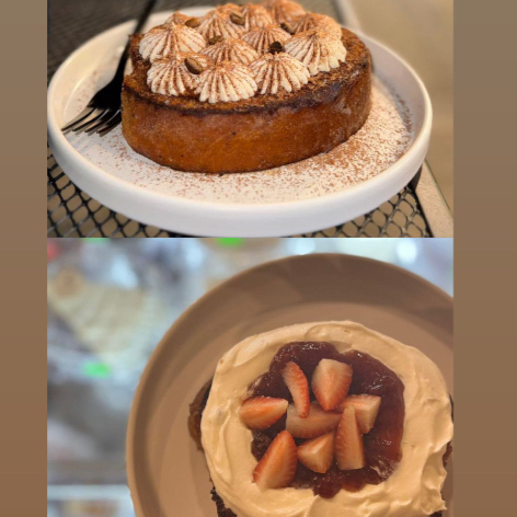 Brioche de la casa, mermelada, jamón de pierna, queso manchego y americano bañado en mezcla cremosa de leche y huevo.
