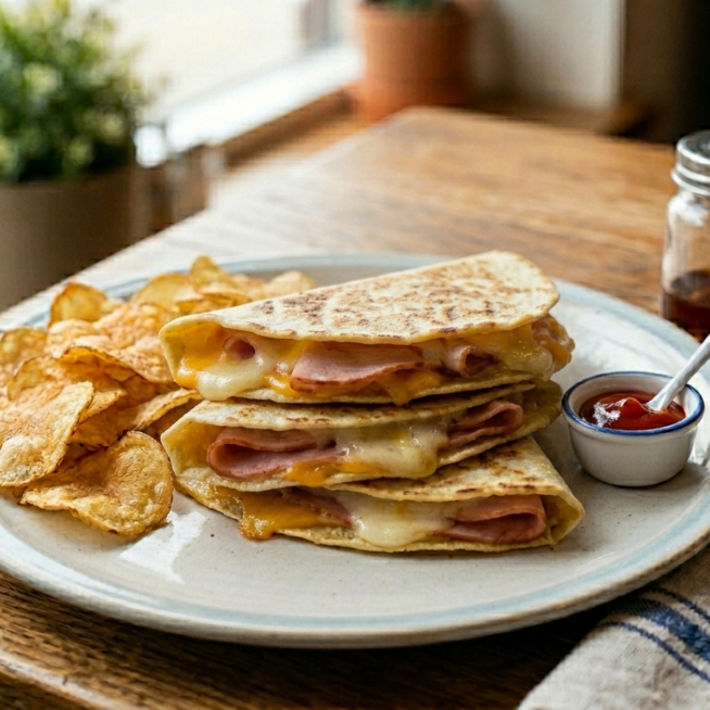 ORDEN DE QUESADILLAS (3piezas), TORTILLA DE HARINA, QUESO MANCHEGO Y CATSUP