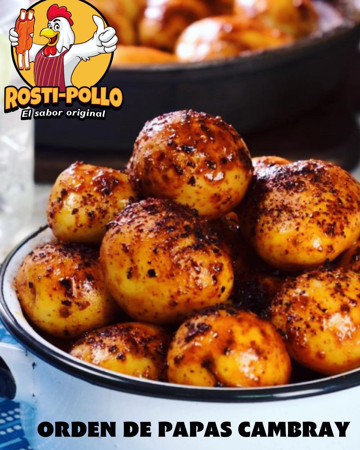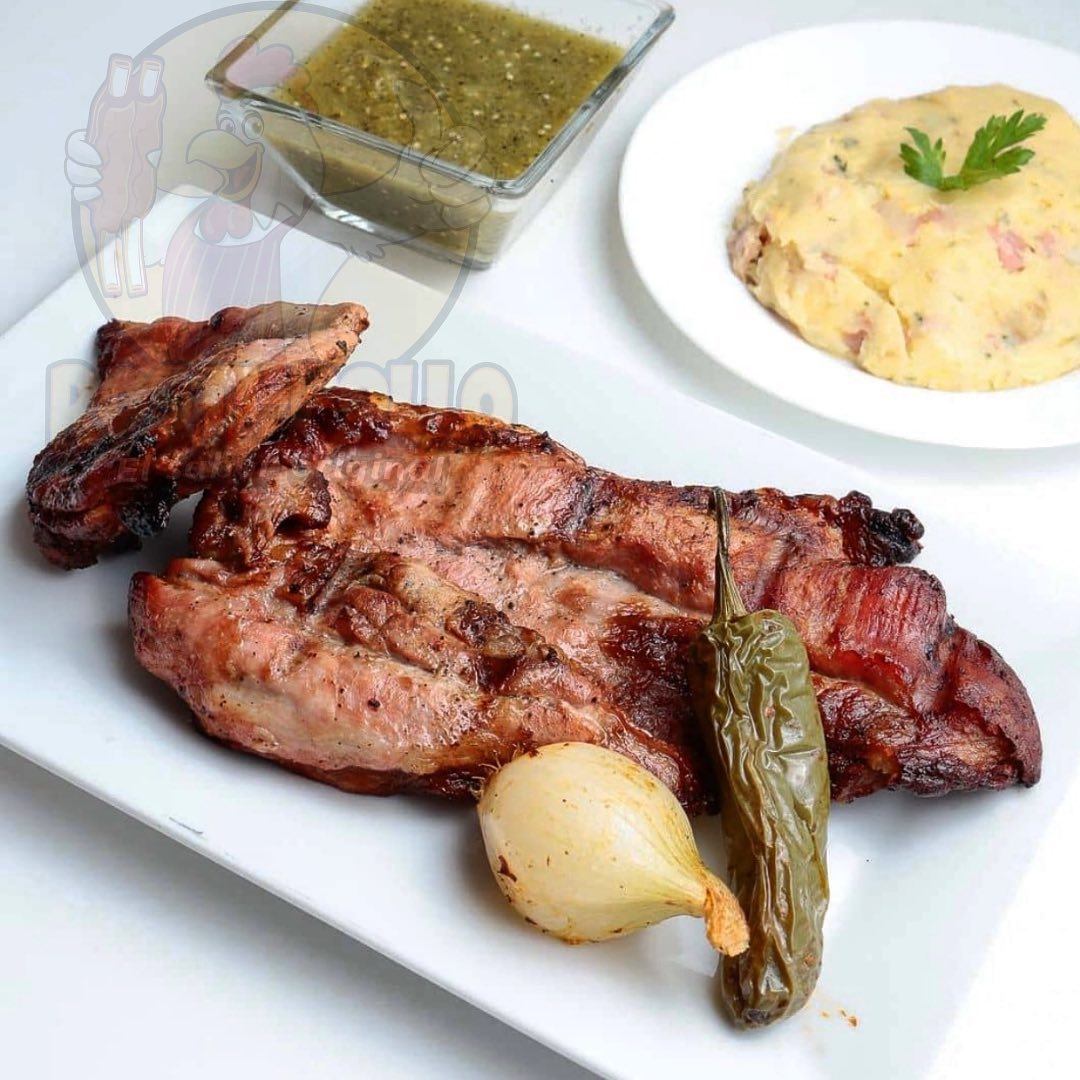1/2 Kilo de costilla, 1 pollo, cebolla, tortillas, salsa, 1 papa rellena y papas cambray.