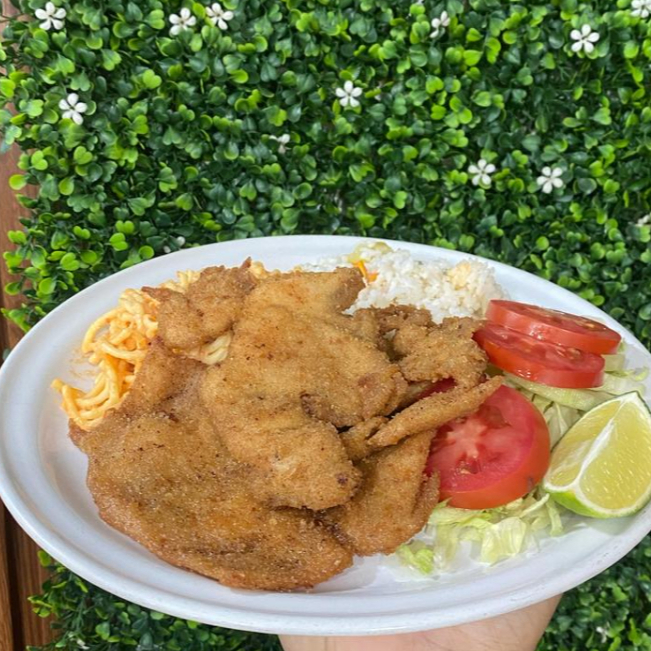 Deliciosa milanesa de pollo empanizada incluye guarniciones a elegir.