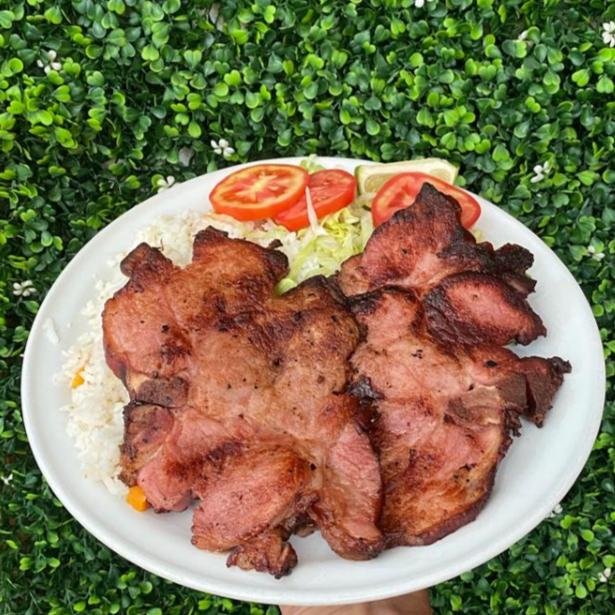 Pieza de puerco ahumada incluye guarniciones a elegir.