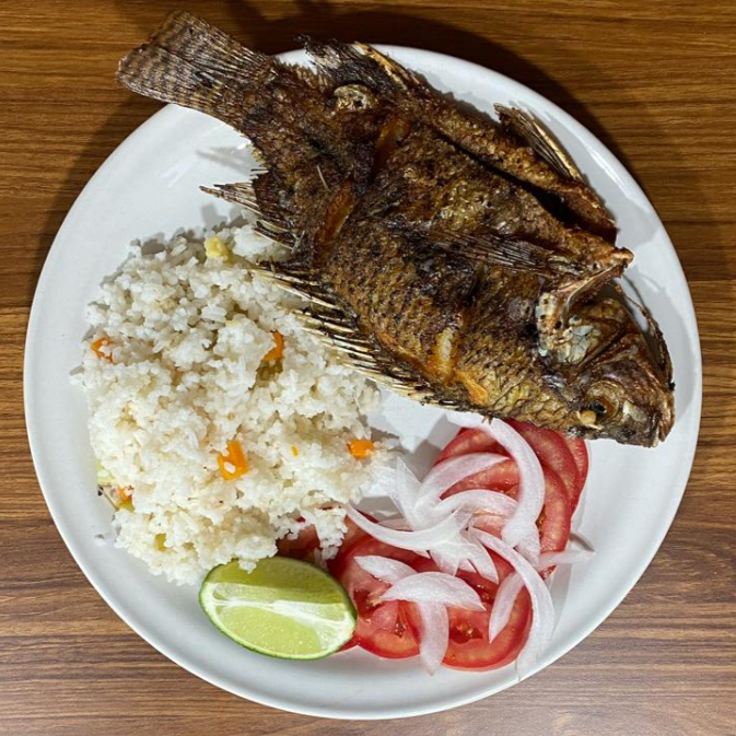 Pieza de mojarra frita incluye guarniciones a elegir.