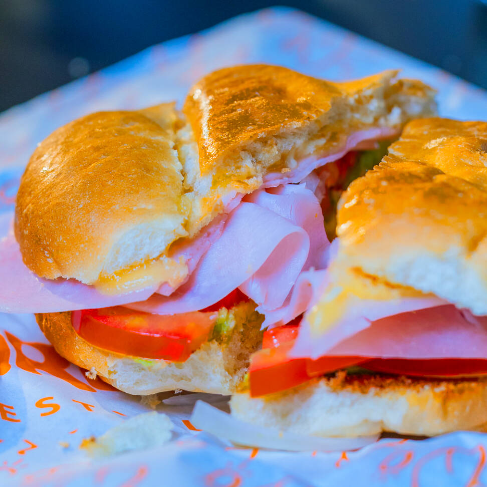 Jamón tradicional de pierna, gratinado con queso gouda.
