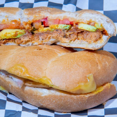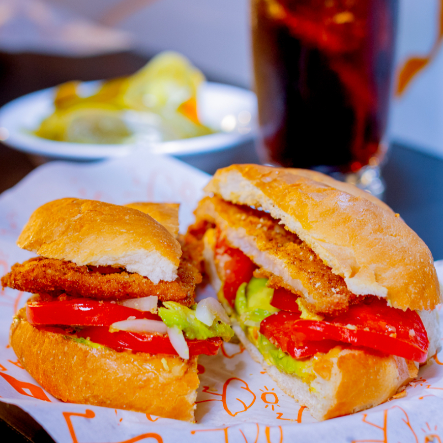Milanesa de cerdo empanizada, gratinada con queso gouda y mayonesa hecha en casa.