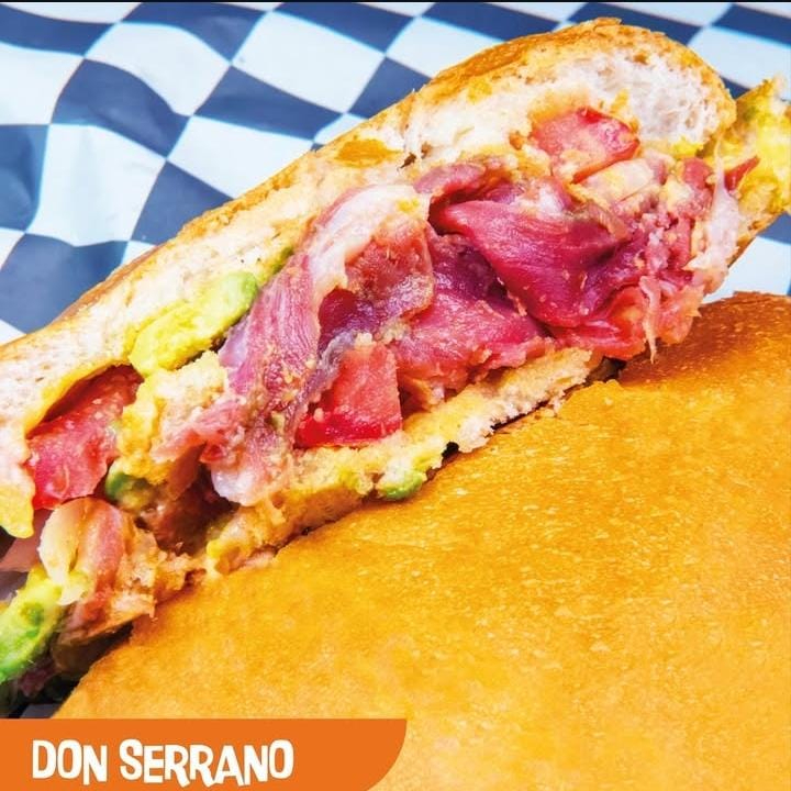 Jamón serrano maduro, con un toque de aceite de olivo y queso fundido sobre el pan.