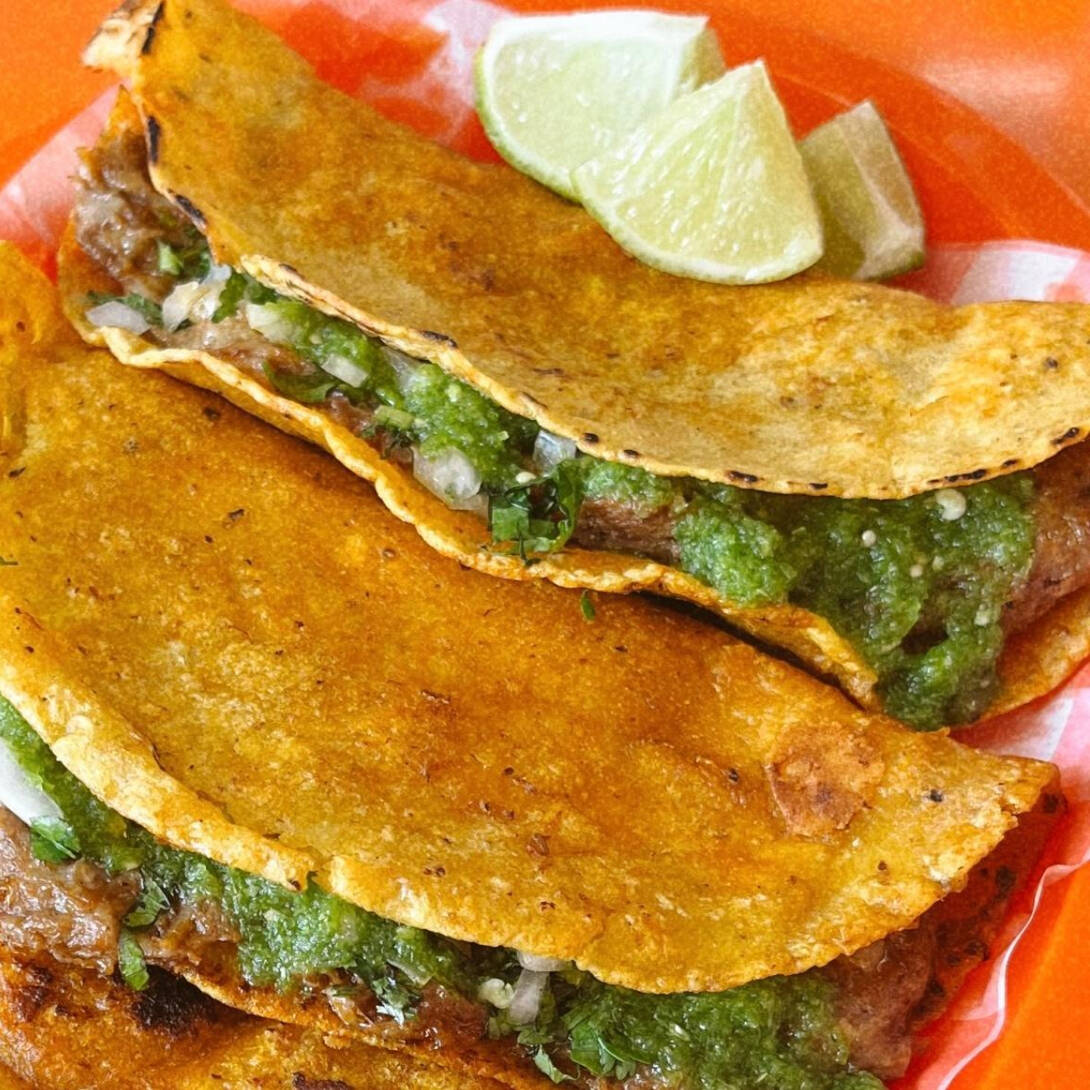 Taco de birria de res dorado a la plancha
