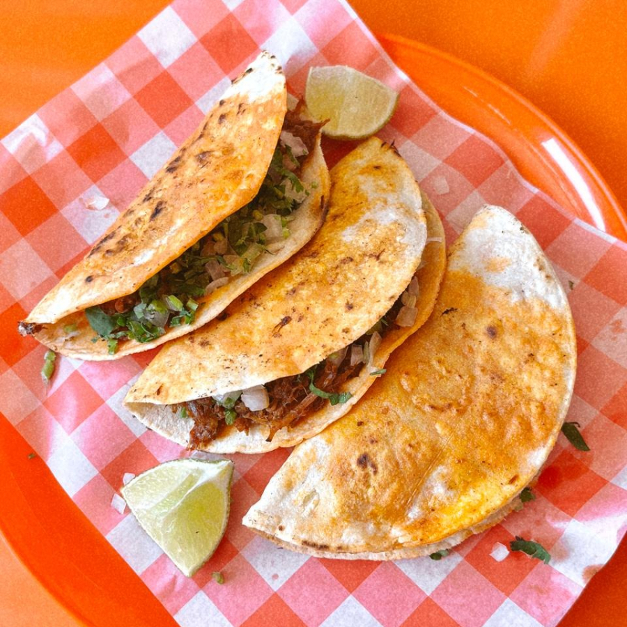 Quesadilla de tortilla a mano de maiz con birria de res y queso chihuahua