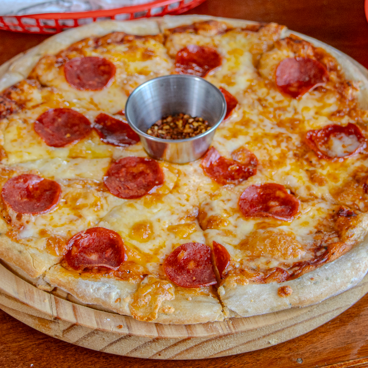 Salsa pomodoro, chorizo mexicano, pimientos, champiñones, queso mozzarella y cebolla.