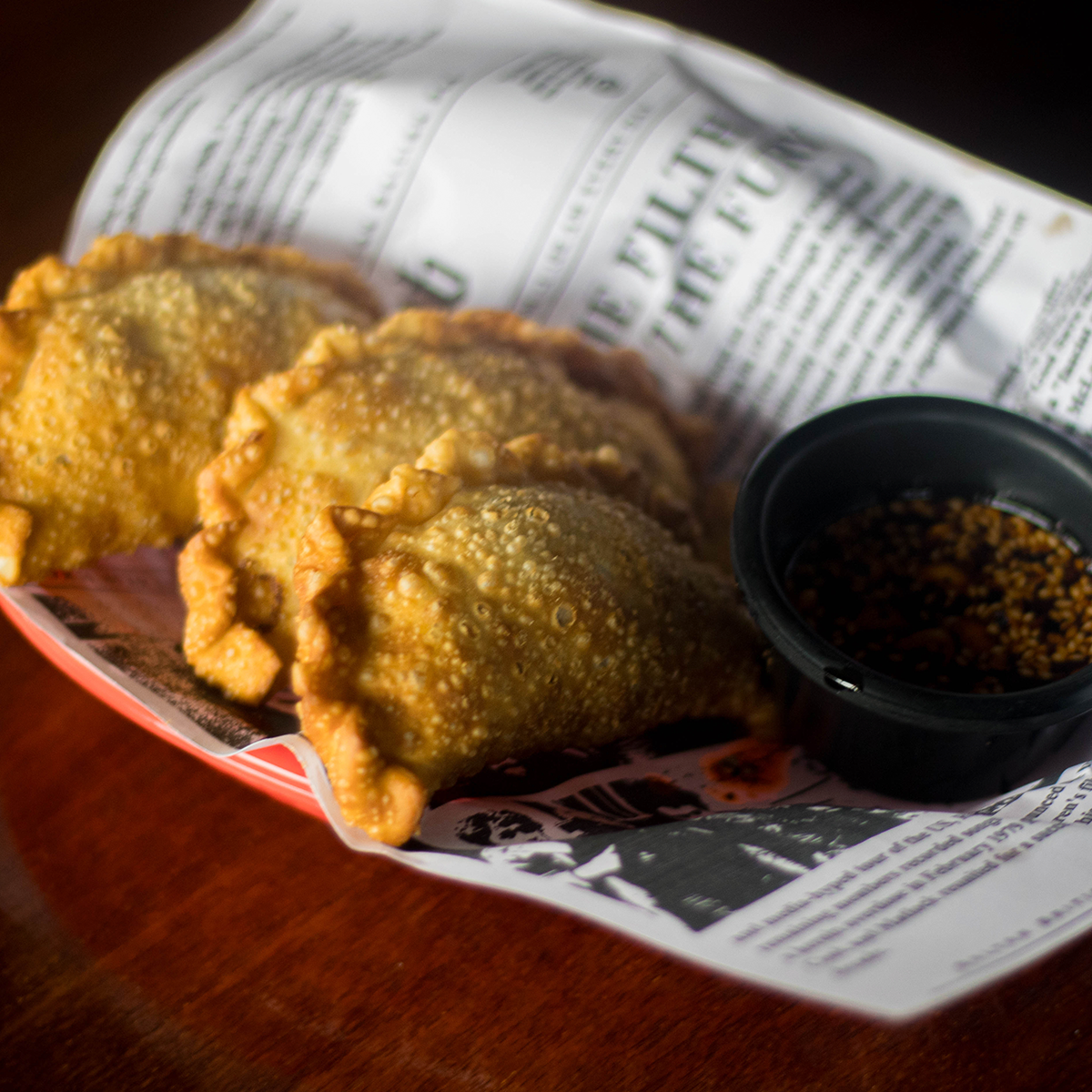 Empanadas rellenas de nuestro guiso con chorizo argentino y queso manchego. Acompañadas de nuestra salsa especial macha. (3 pzas)