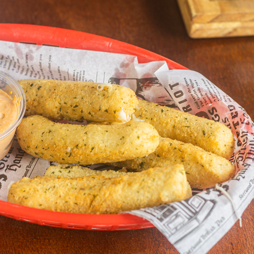 Dedos de queso mozzarella empanizados. Acompañados de aderezo especial de chipotle. (6) pzas