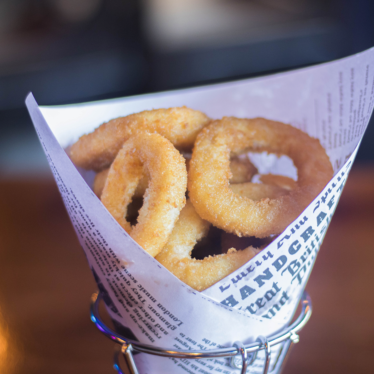 Aros de cebolla empanizadas con nuestro toque especial de casa. Acompañado de nuestro cremoso aderezo de chipotle. (10pzas)