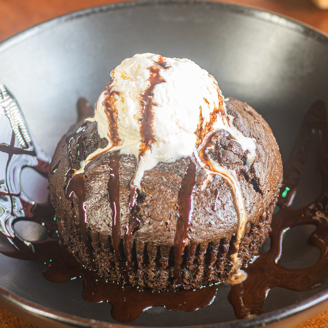 Cremoso cheese cake estilo New York. Bañado con chocolate líquido y strawberry’s elds.