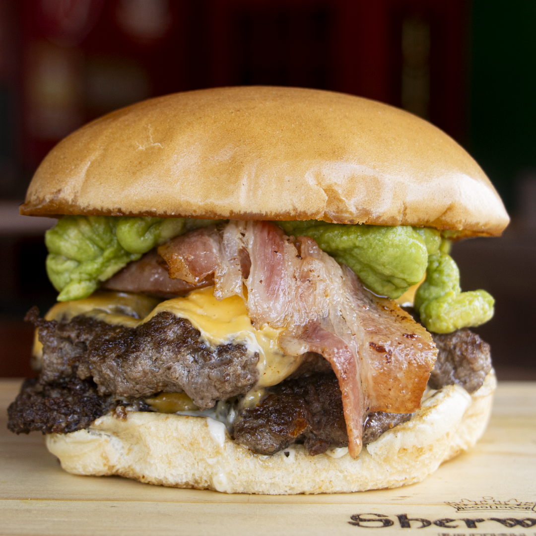 Pan brioche, carne de res smash, chorizo argentino, cama de lechuga, tomate, queso amarillo, guacamole, chiles jalapeños y aderezo ranch. Acompañado de 200 g. Papas a la francesa.