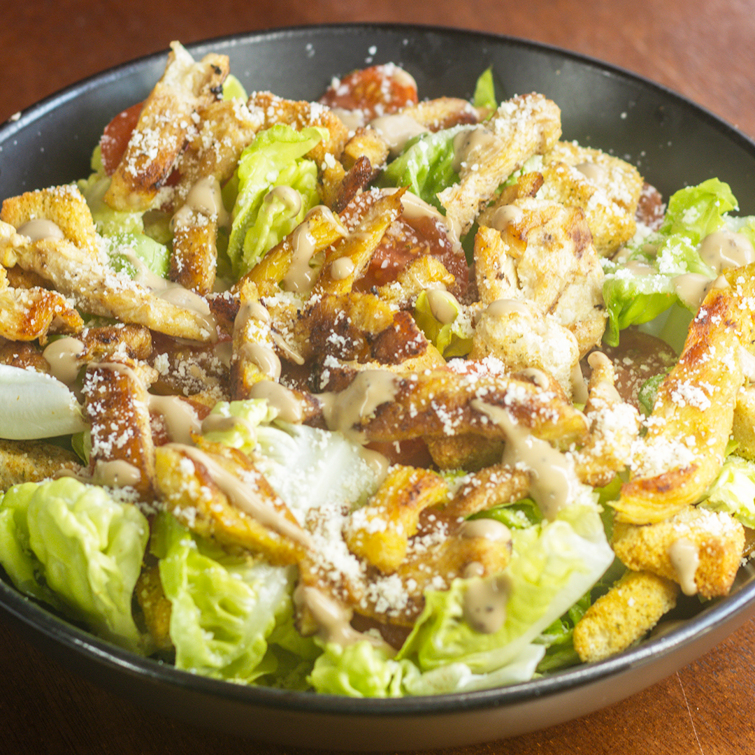Lechuga baby sweet, aceite de olivo, pechuga de pollo a la plancha, tomate cherry, aderezo Cesar, crotones y queso parmesano.