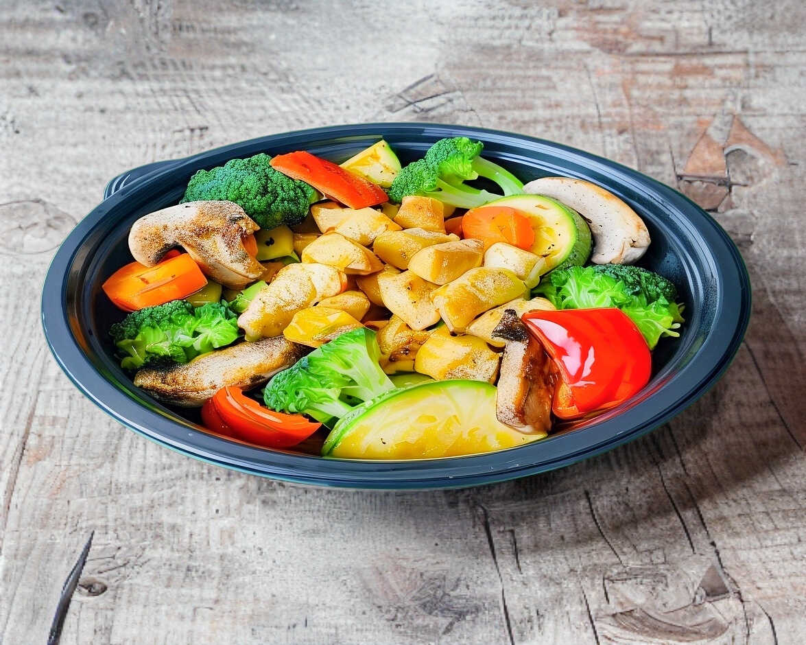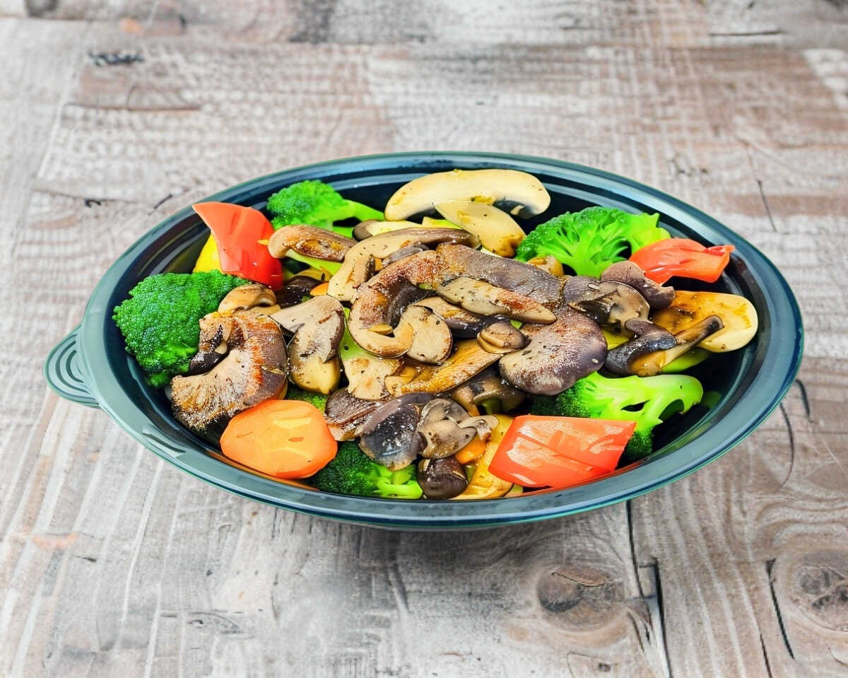 ZANAHORIA, CALABAZA, BROCOLI, PIMIENTOS, CHAMPIÑONES, PASTA, 150 GRS DE PICAÑA ASADA PESADA EN CRUDO
