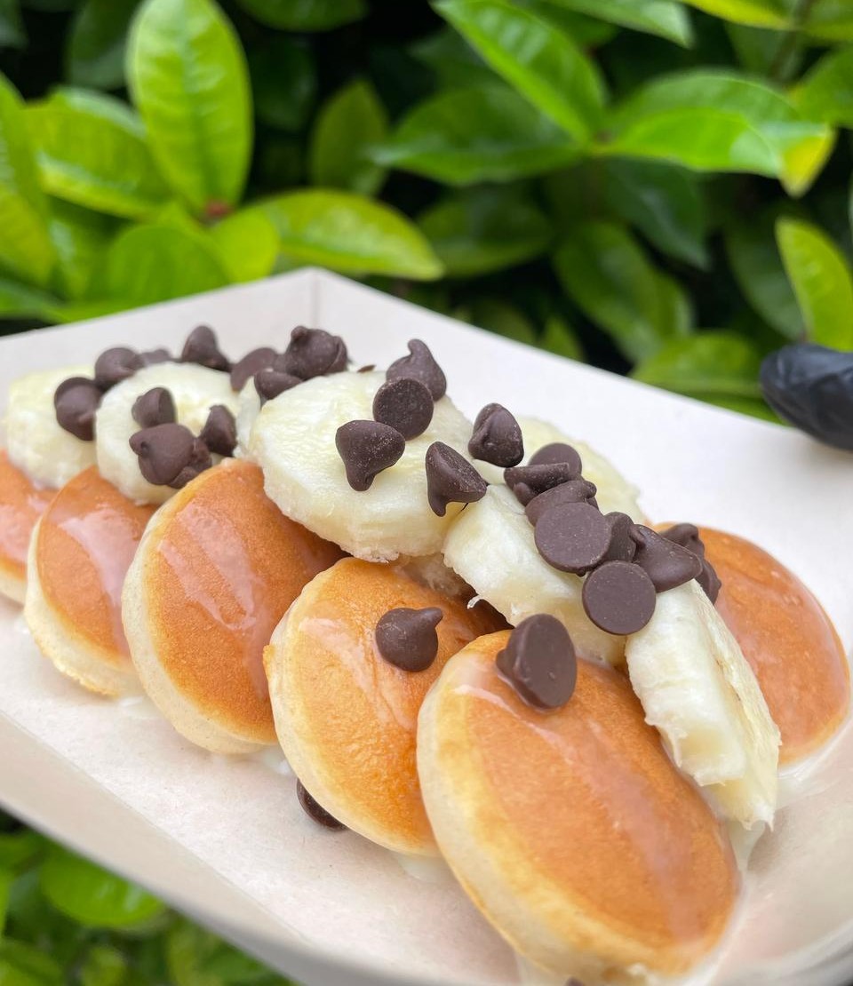 Exquisitos mini hotcackes calientitos y esponjosos, incluye toppings ilimitdos.