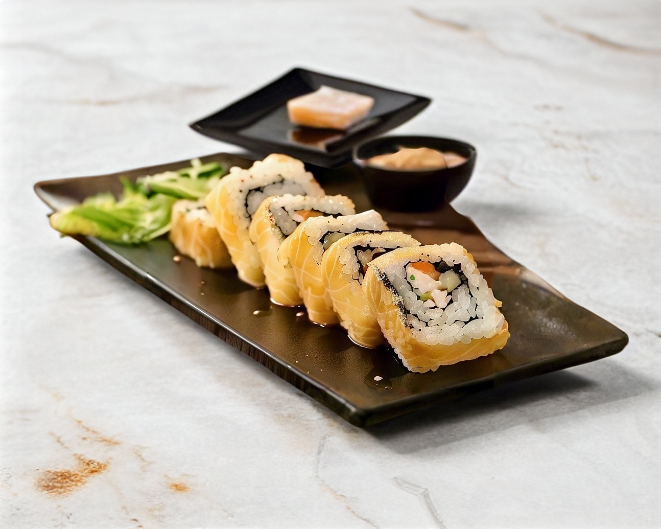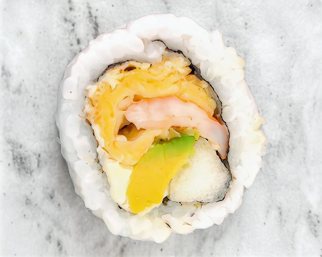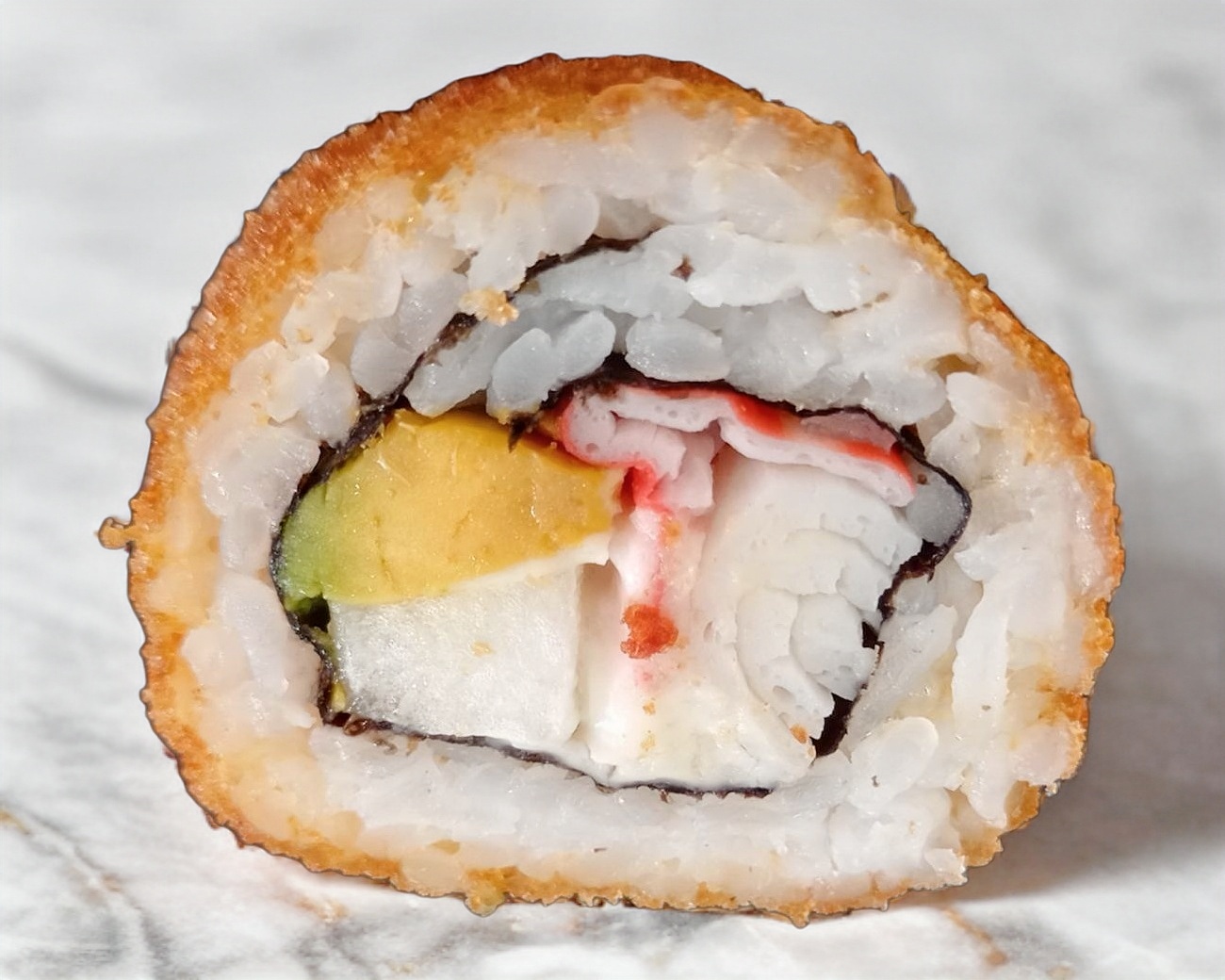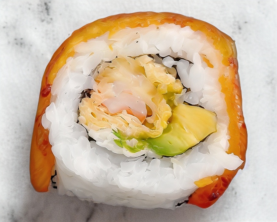 PD: camaron, carne, pepino, aguacate y queso crema, PF: Queso manchego.