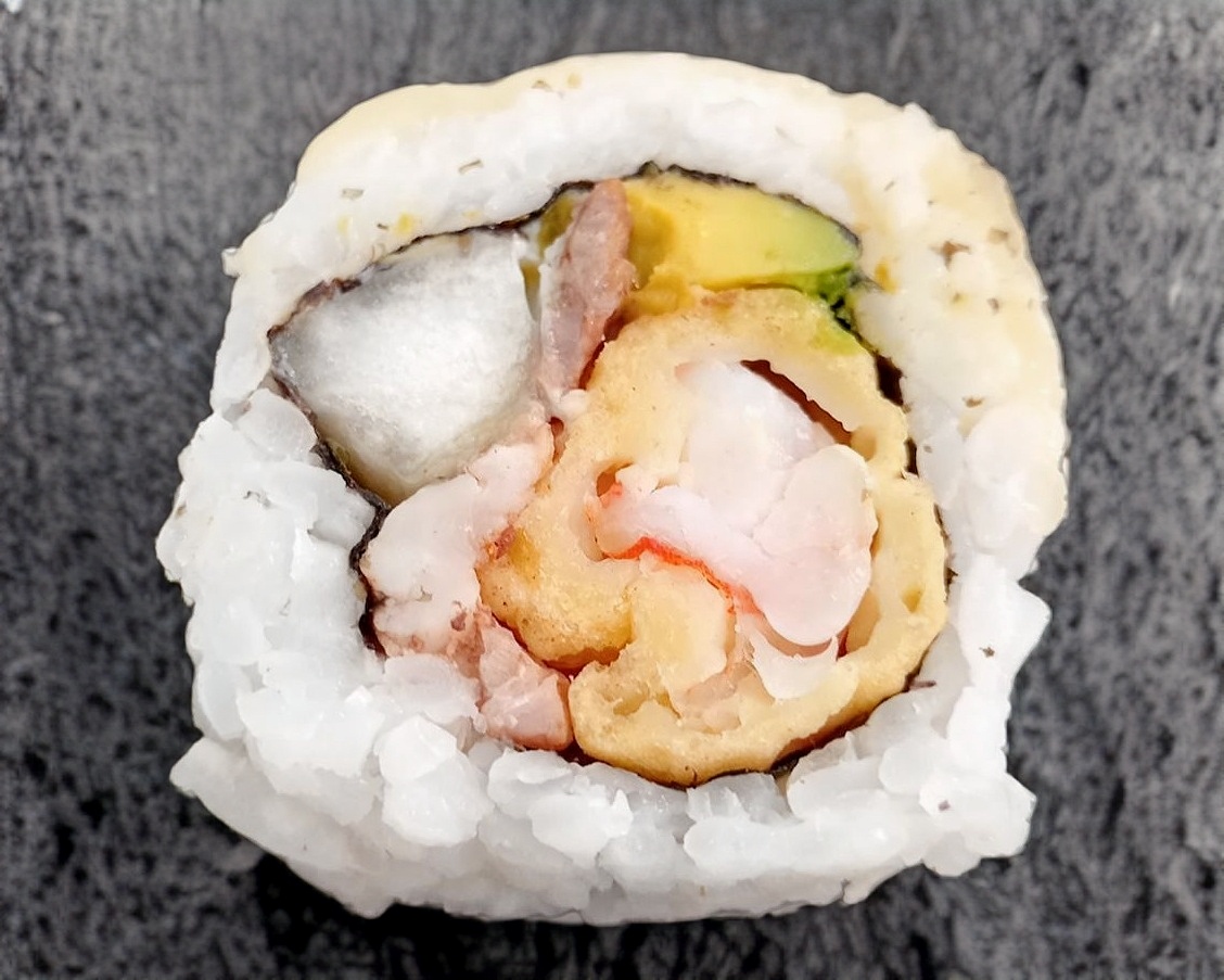 PD: Camaron, aguacate, pepino y queso crema, PF: Tampico.