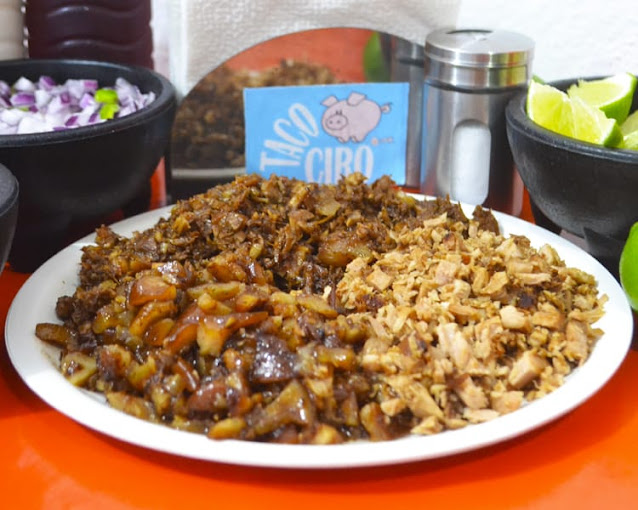 Deliciosos tacos de carnitas de cerdo, con la sazón especial de la casa.