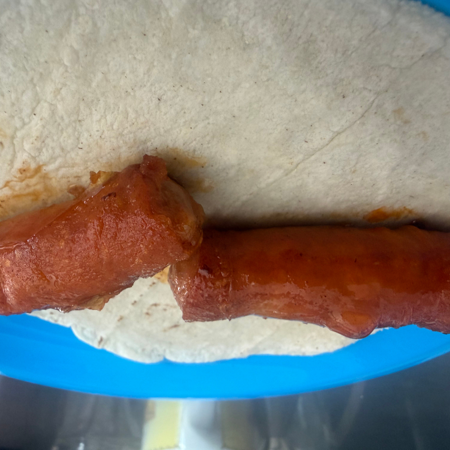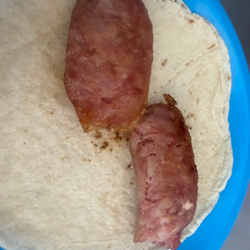 Quesadilla de tortilla de harina con queso mozarella y chorizo argentino