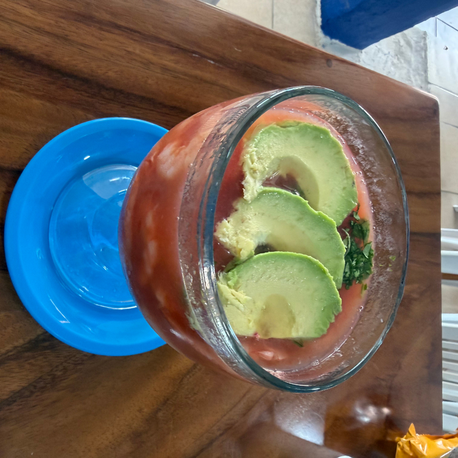 Coctel de camaron preparado con capsut, leve porcion de cebolla aguacate y cilandtro con un toque de limon para darle un sabor delicioso