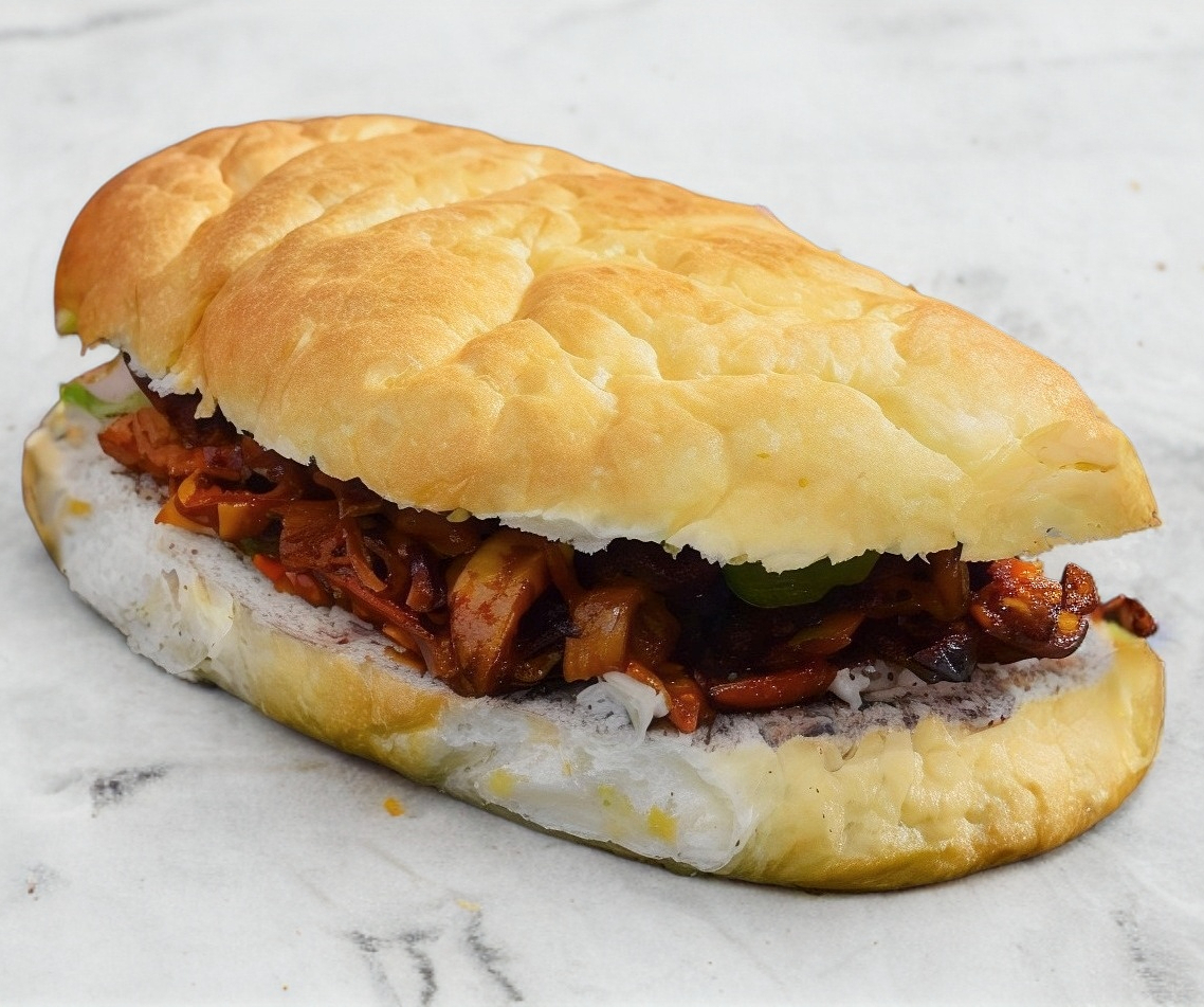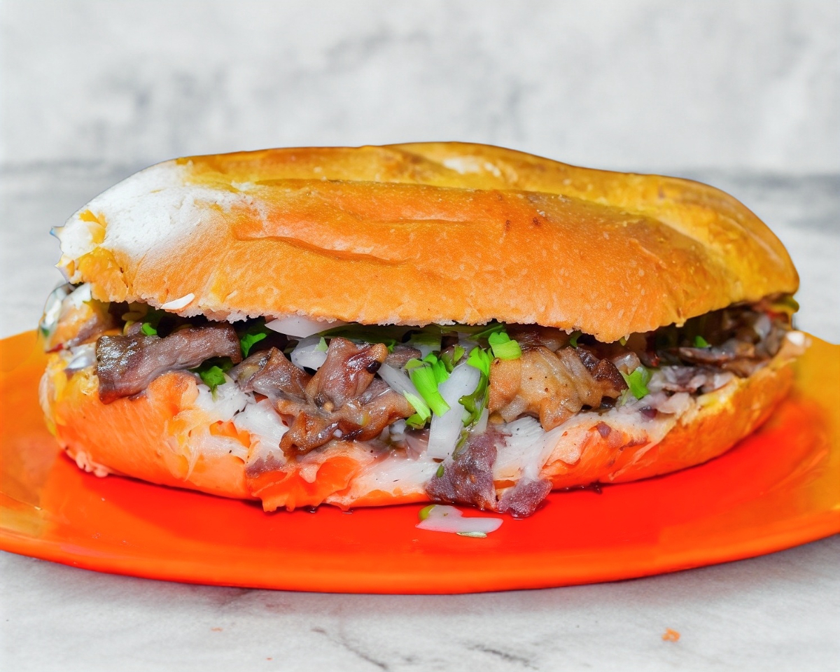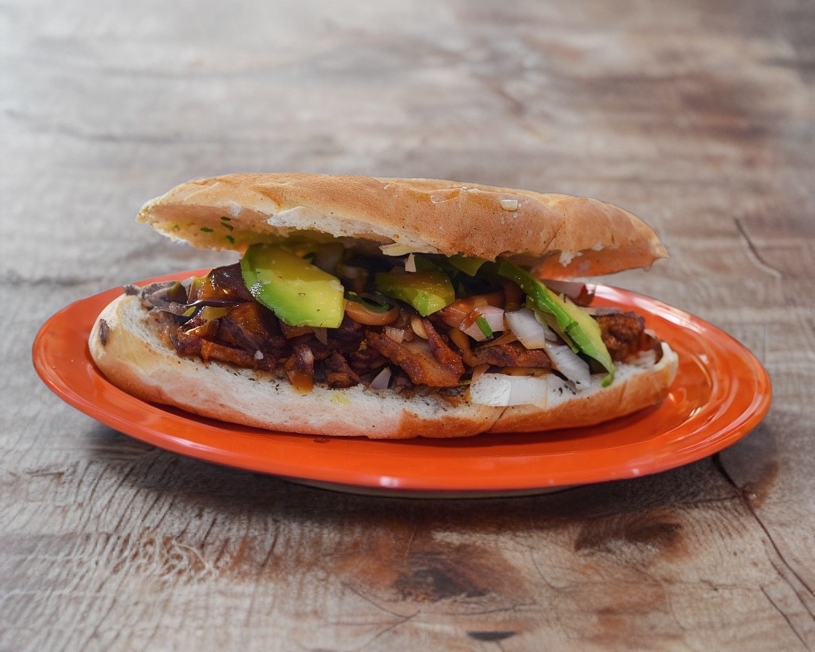 Pan de baguette 20 cm aproximadamente, frijol, mayonesa, lechuga, tomate, aguacate, carne.