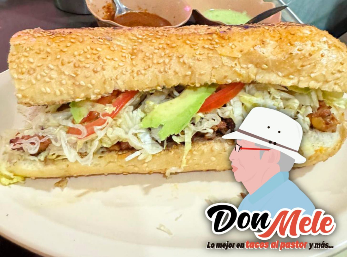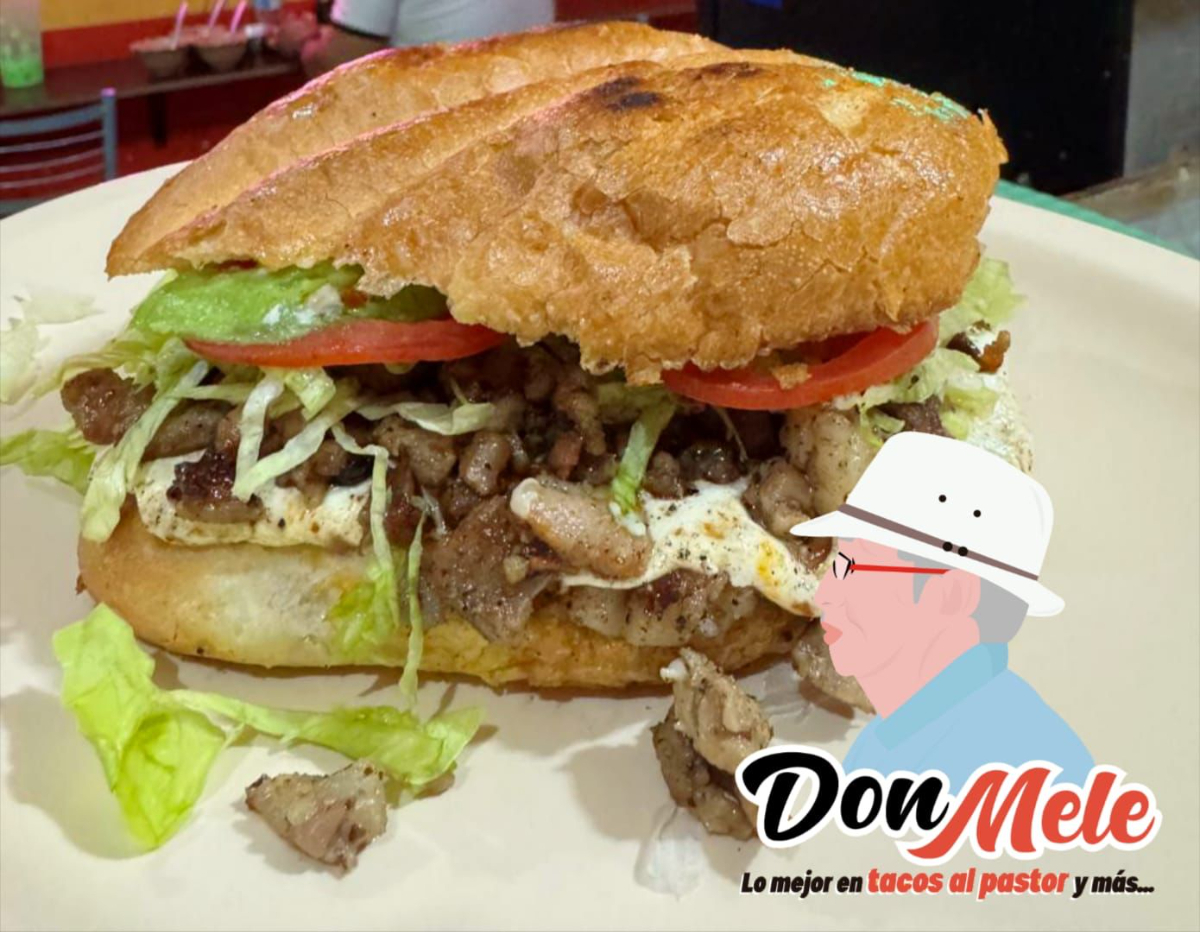 Telera, frijol, mayonesa, quesillo, aguacate, chuleta.
