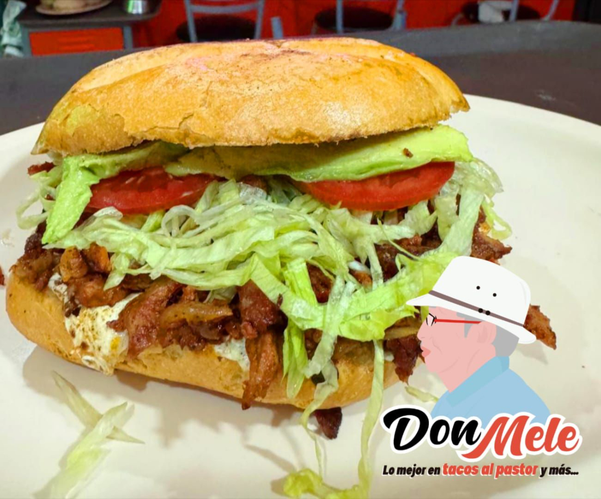 Tortillina de harina 20 cm, frijol, mayonesa, lechuga, tomate, aguacate, bistec de res, carne al pastor.