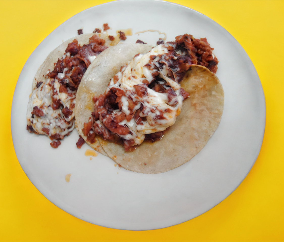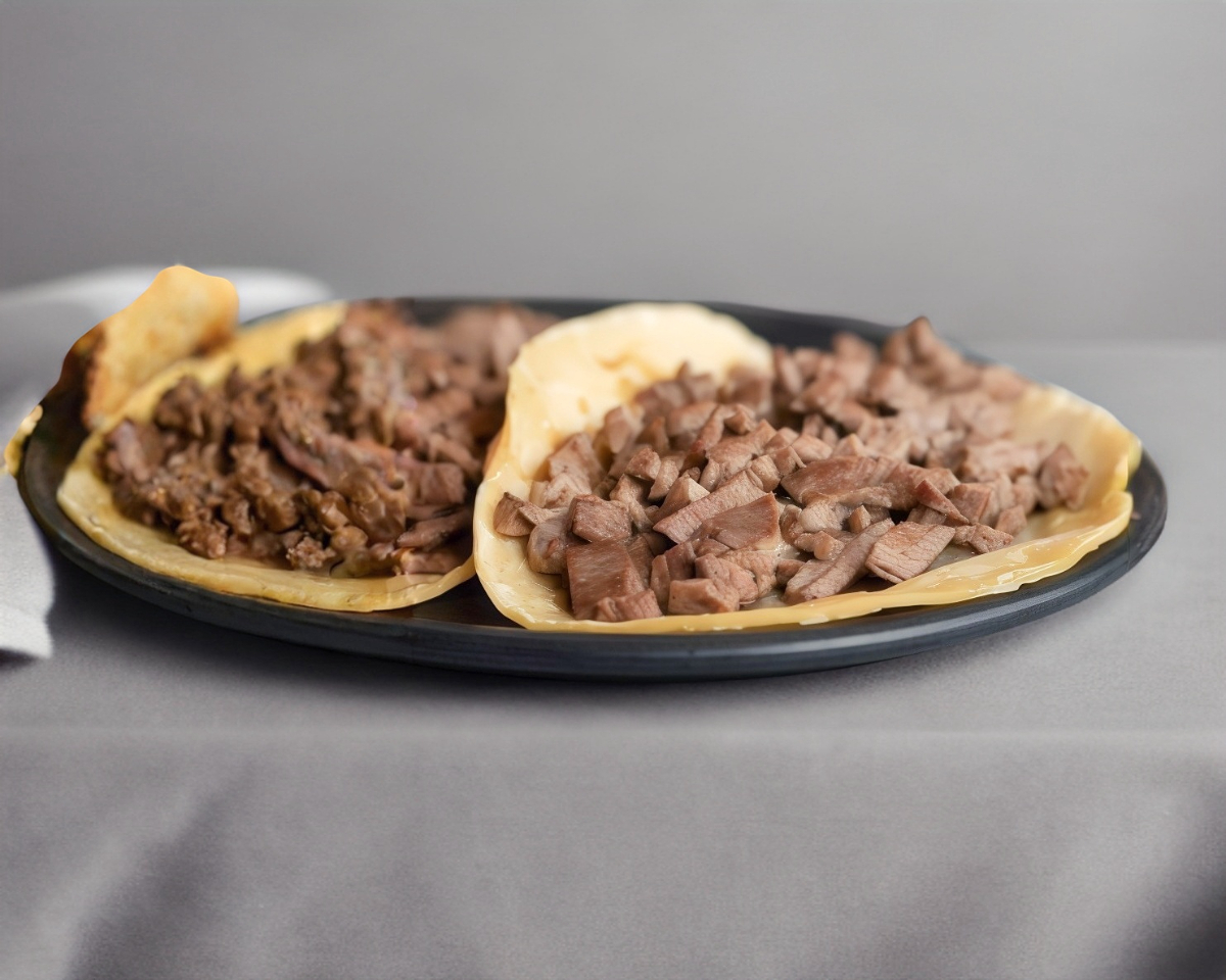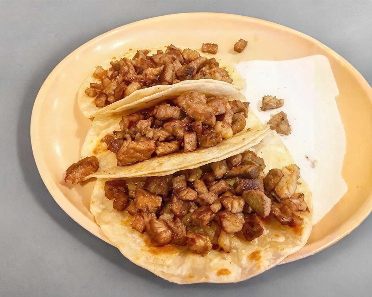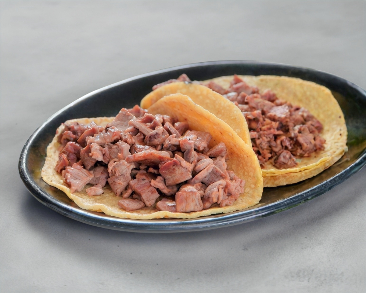 Tortilla doble de maíz amarillo con carne de chuleta.