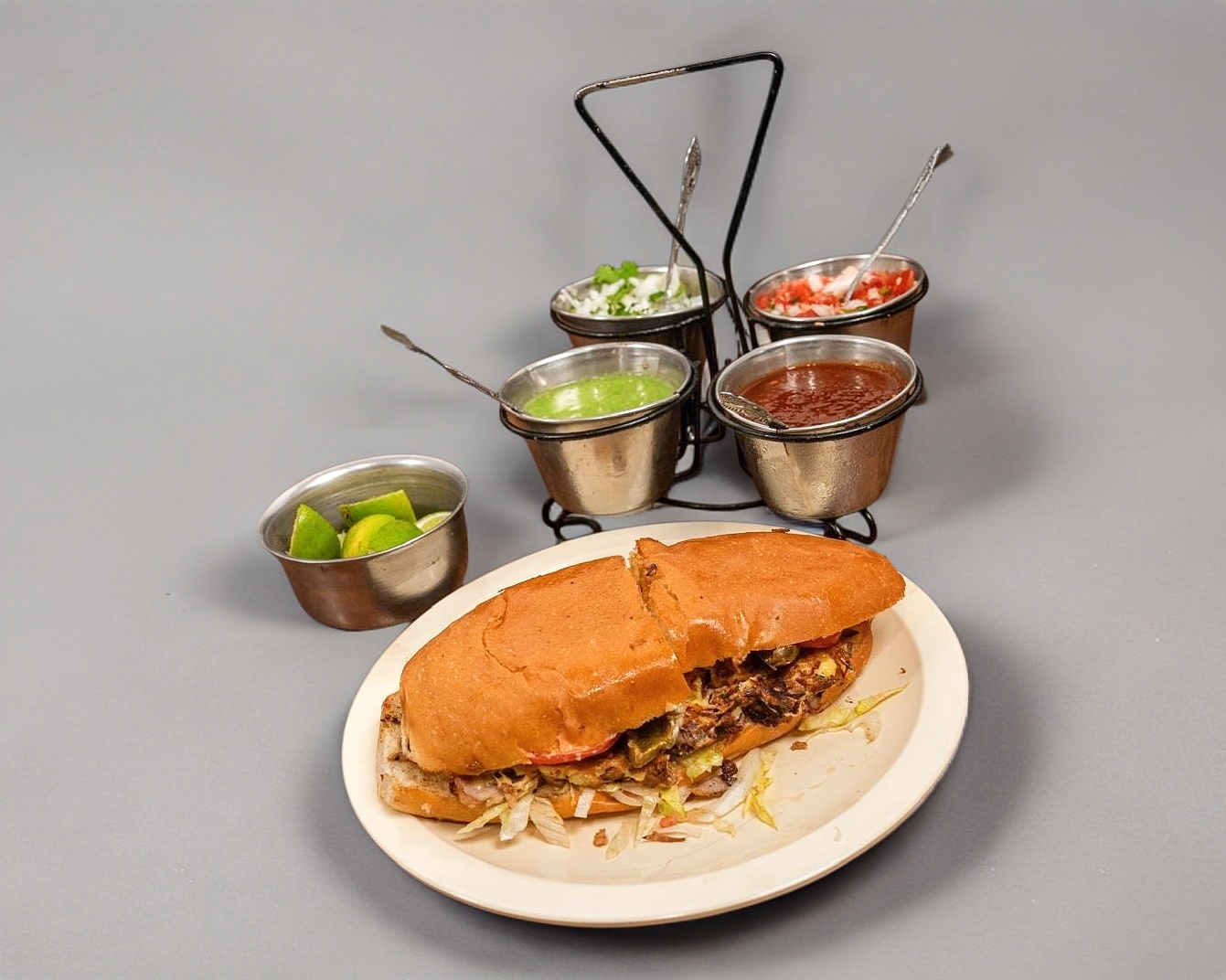Incluye Guacamole, Frijoles Charros, Cebolla Asada, Tortillas, Salsa y Limoncito