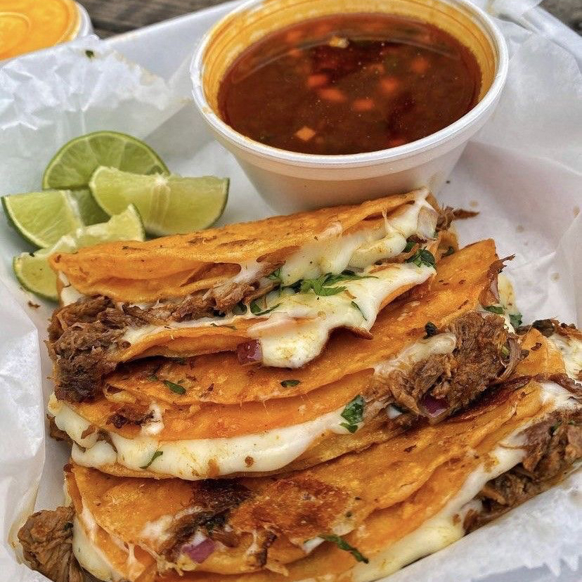 CARNE DE RES, TORTILLA TAMAÑO NORMAL DE TORTILLERIA, QUESO MANCHEGO.