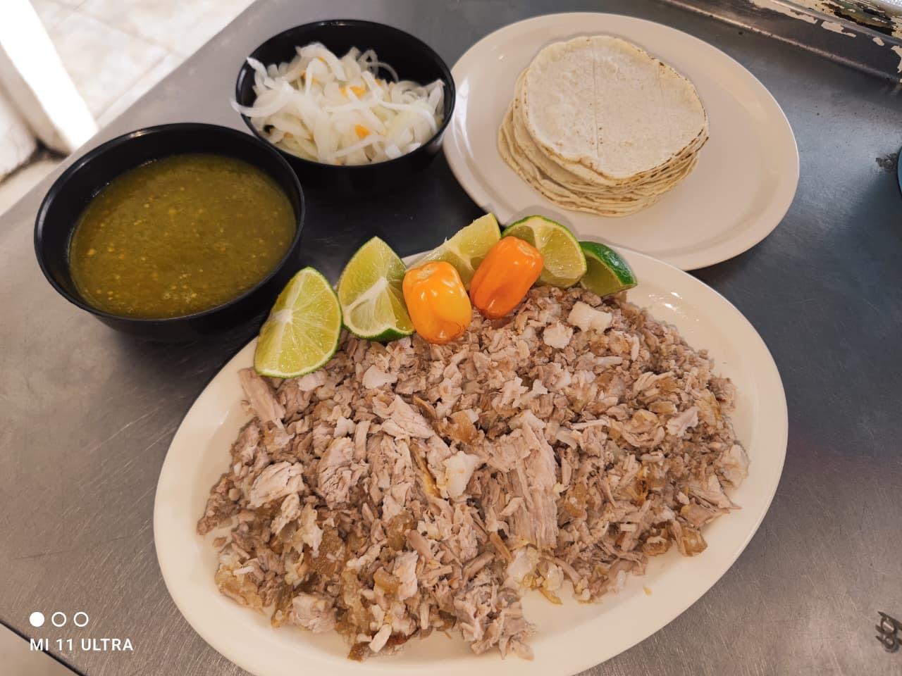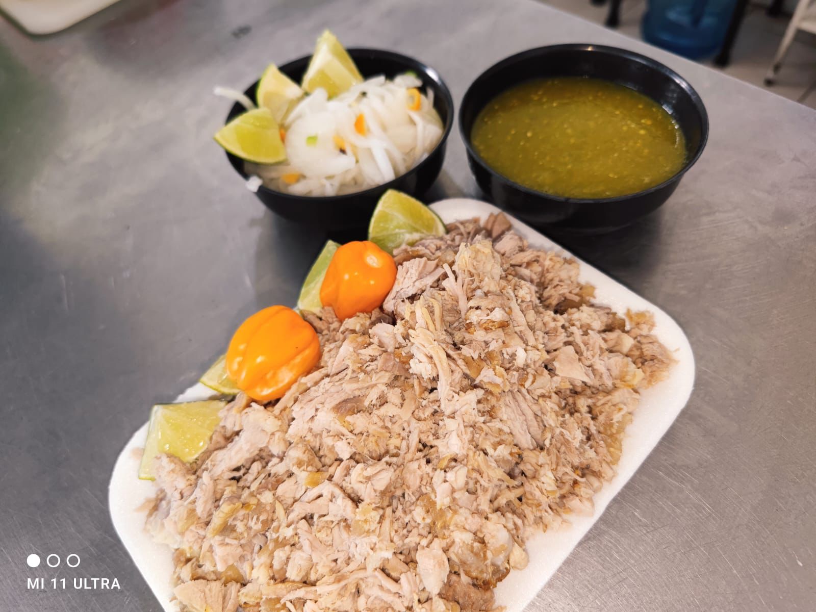 Carnita de Maciza incluye Salsa verde,Cebolla curtida ,Limón y Repollo con cilantro