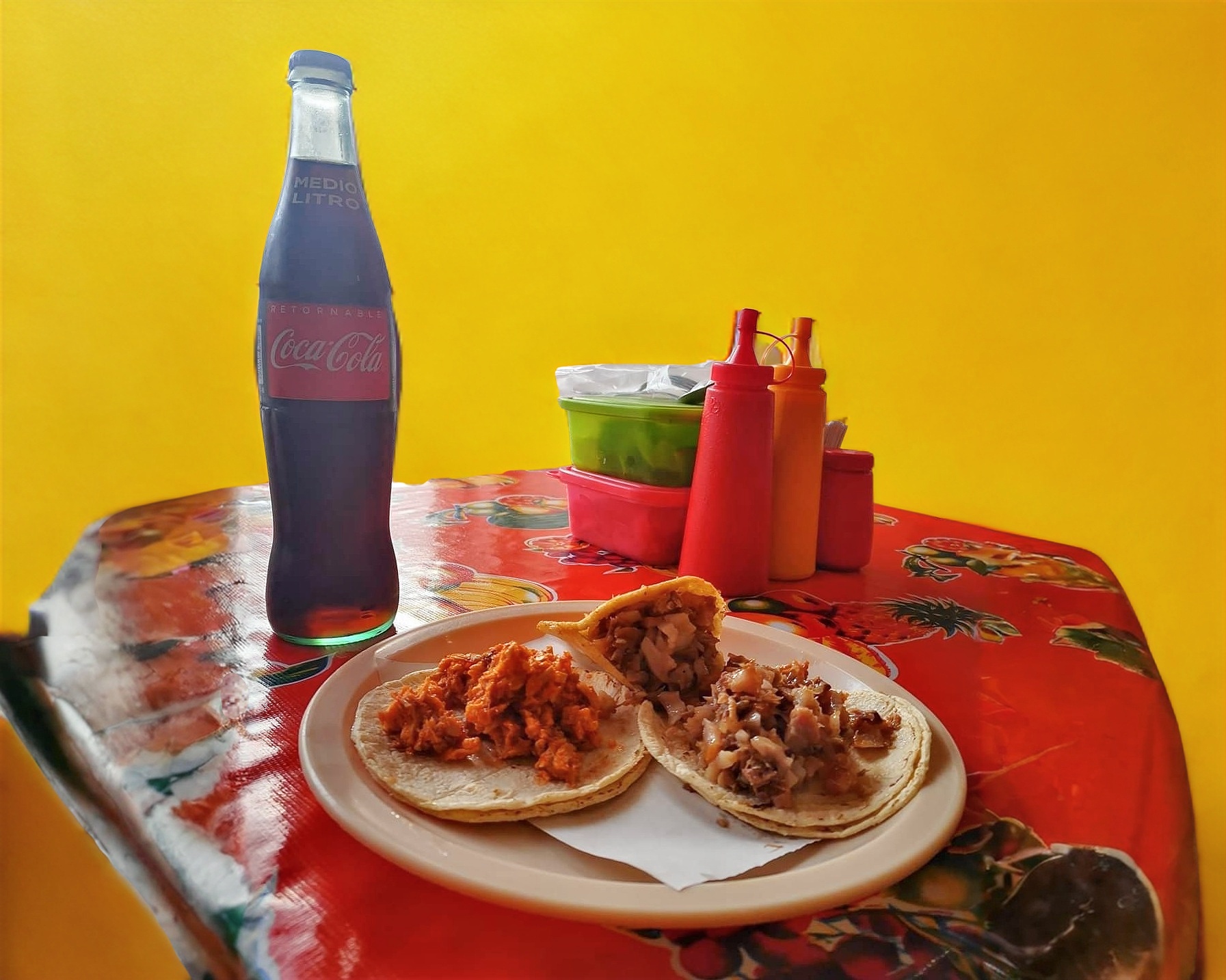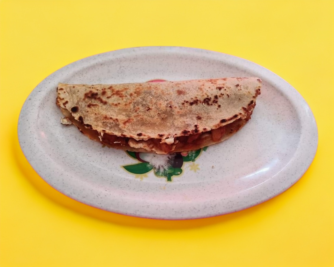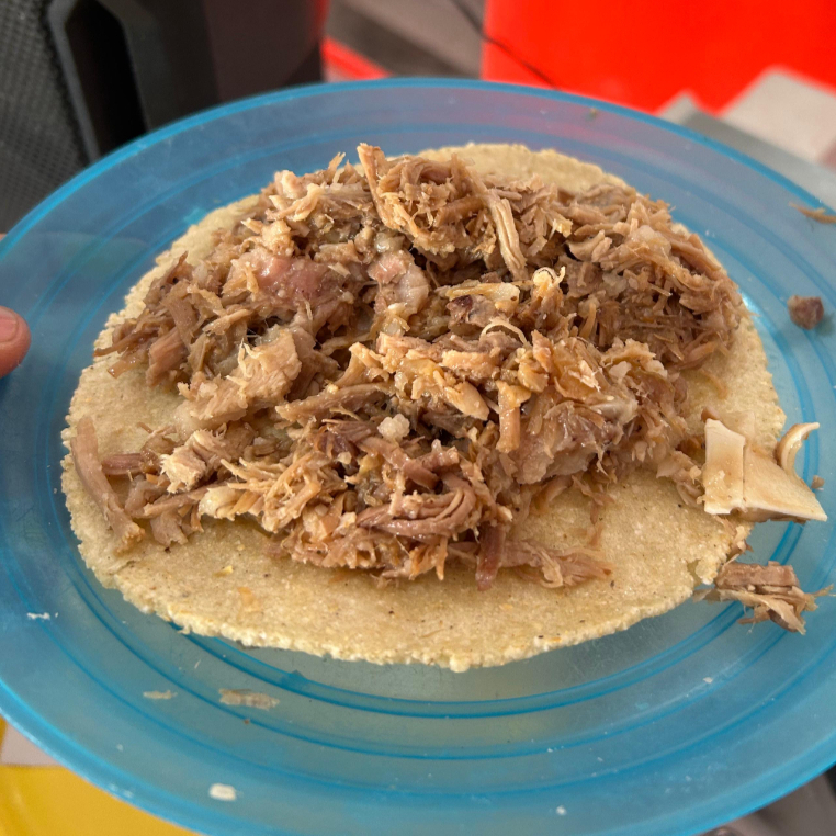 tortilla de maiz hecha a mano, de un buen tamaño, con aproximadamente 100 gr de carne de tu eleccion
