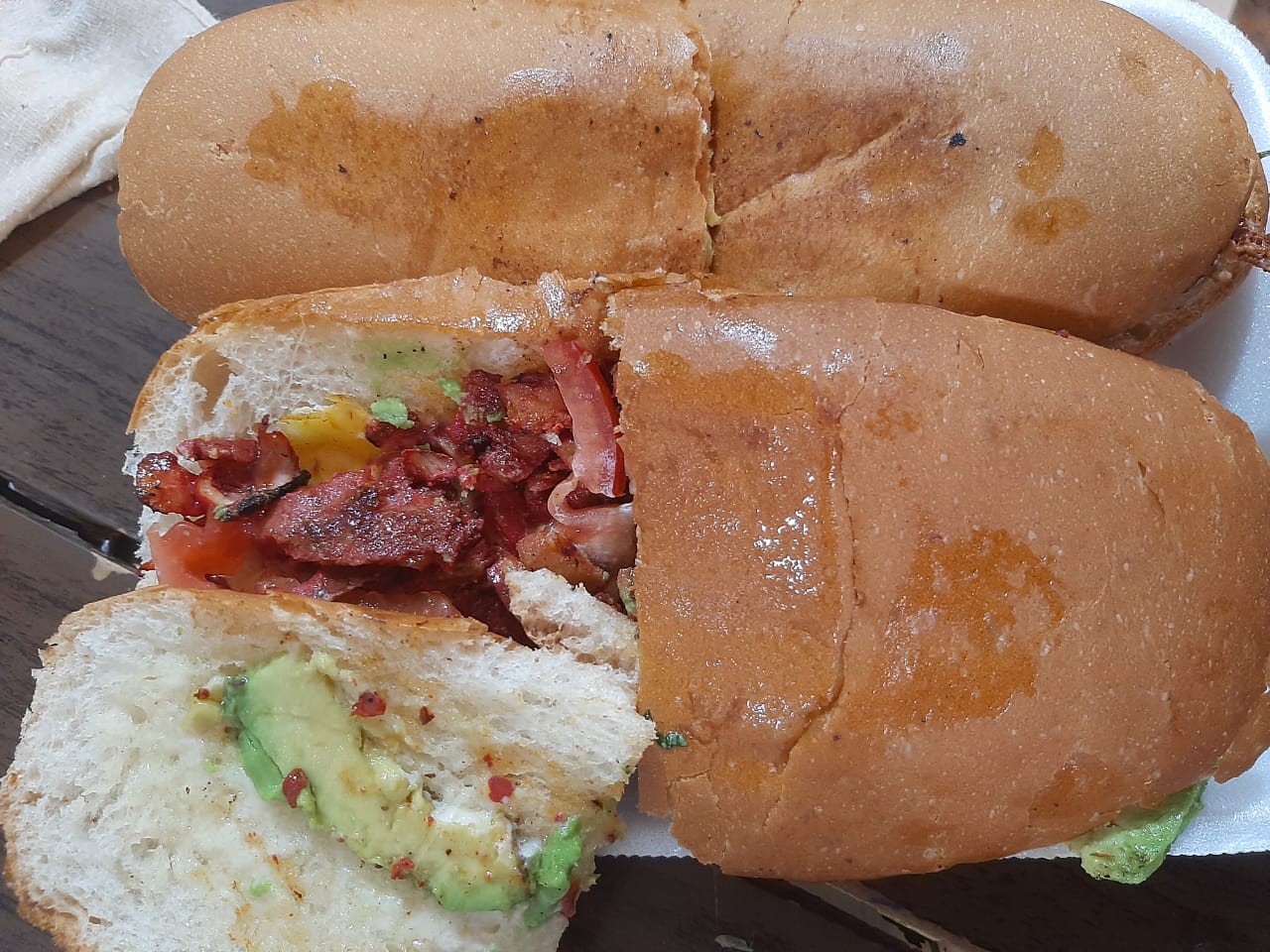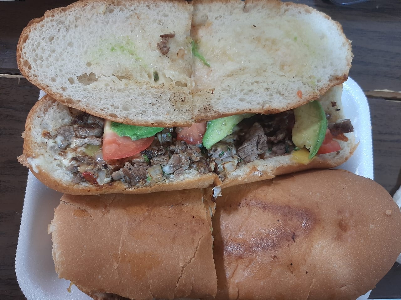 Manchego, jitomate, aguacate, piña y carne de bistec.