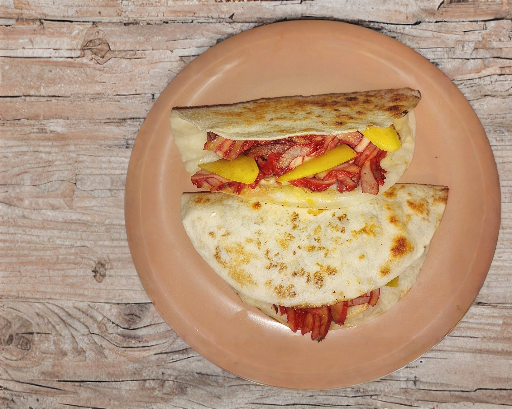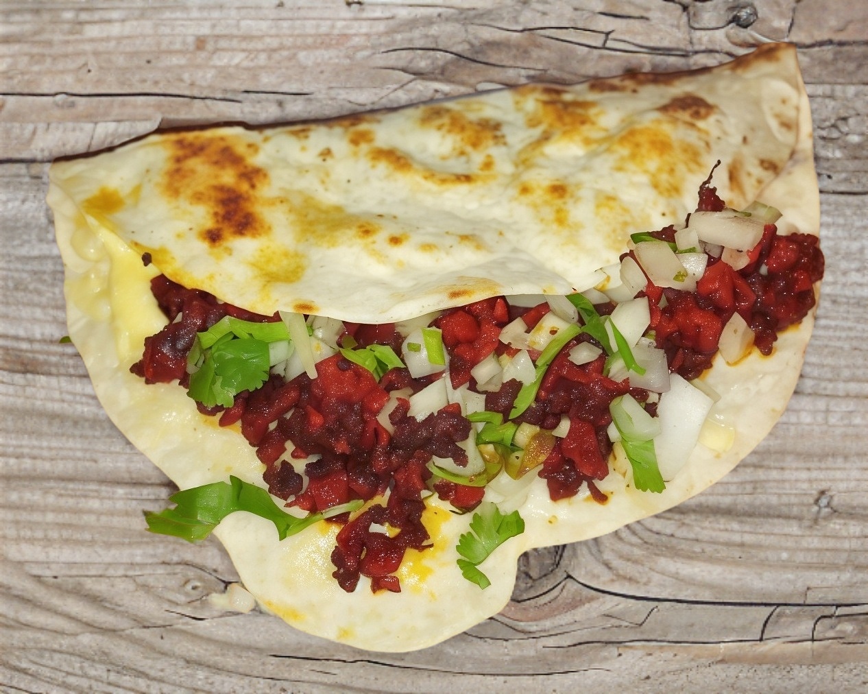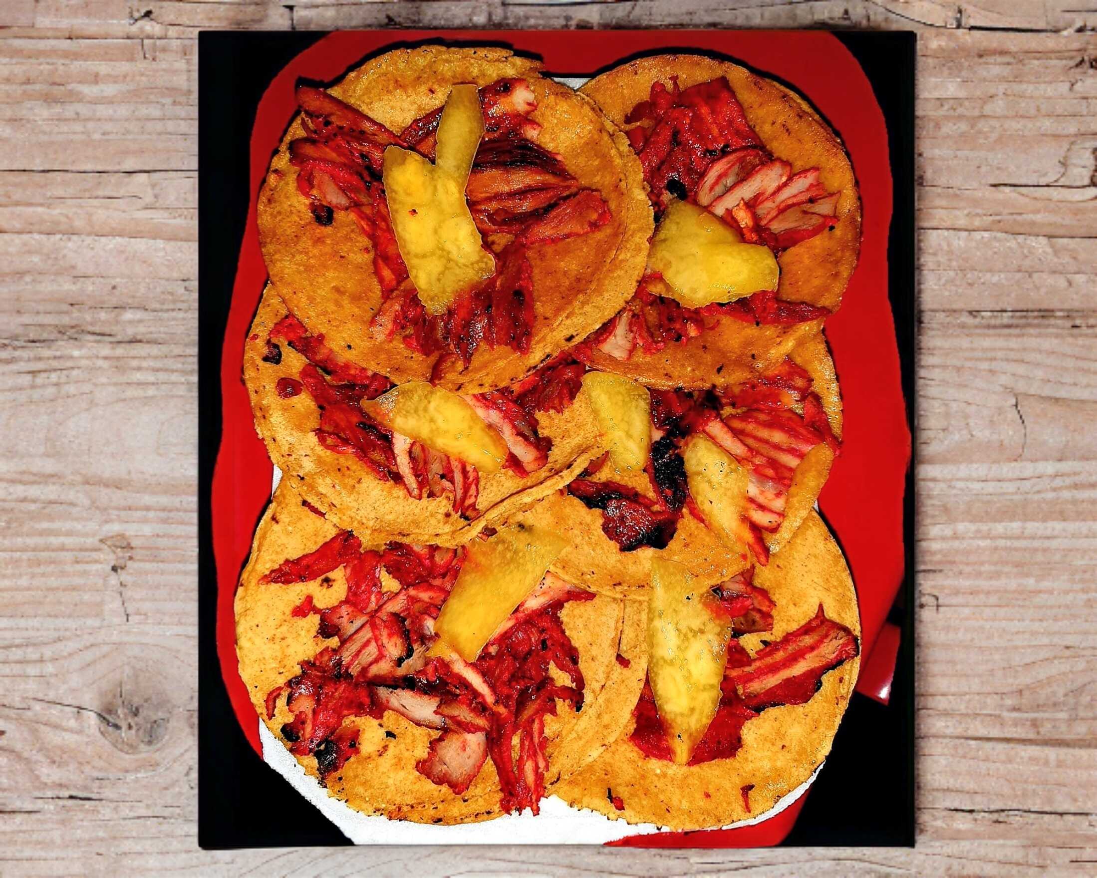 Manchego, tortilla de harina y carne al pastor (1 piezas).