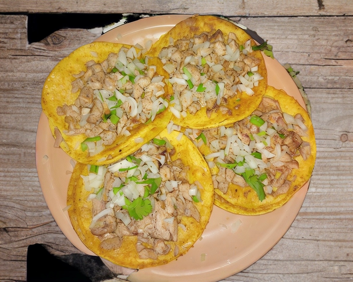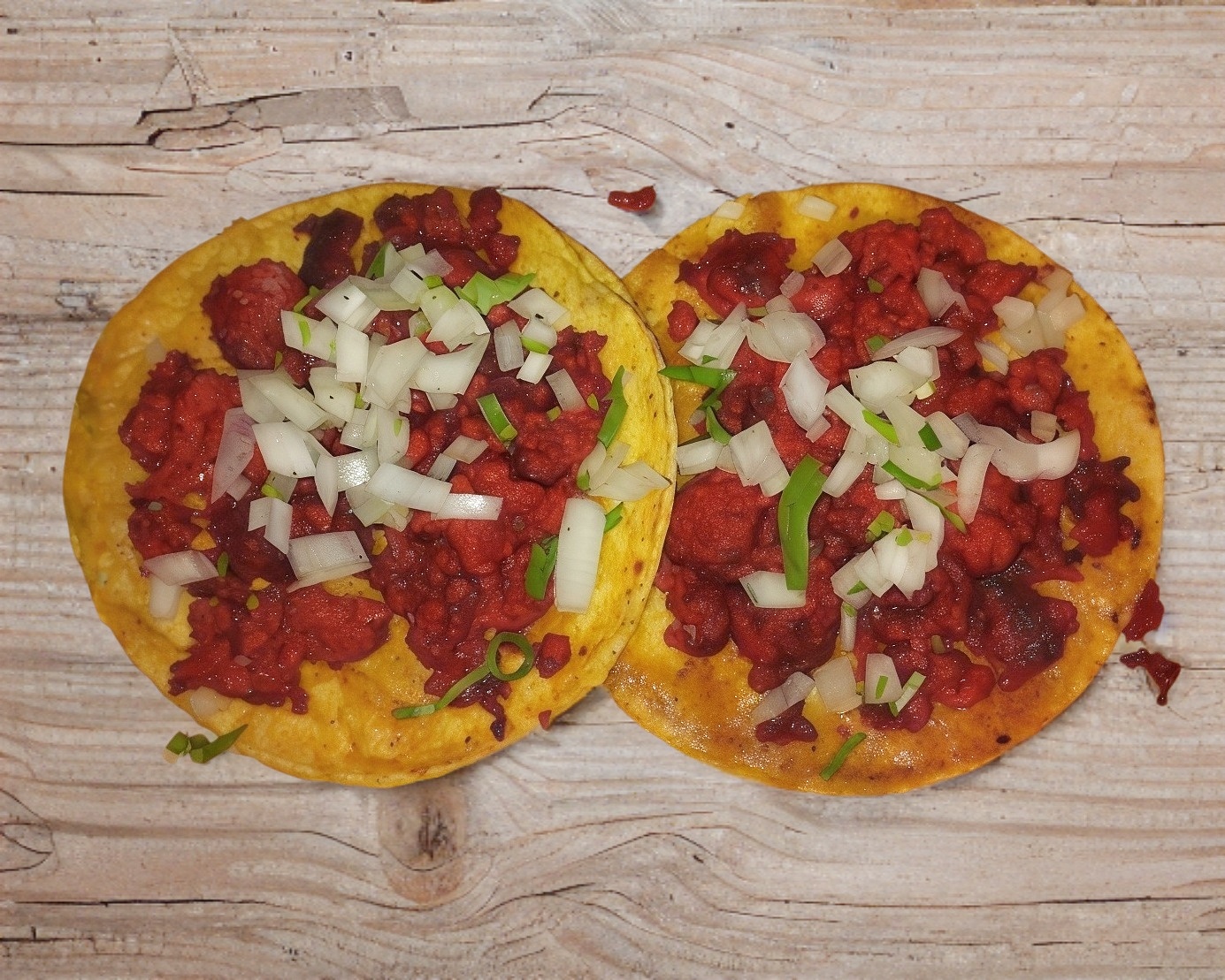 Disfruta de un taco con doble tortilla normal, relleno de 25 g de carne al pastor, acompañado con piña, cebolla, cilantro, pepino, salsa y limón.