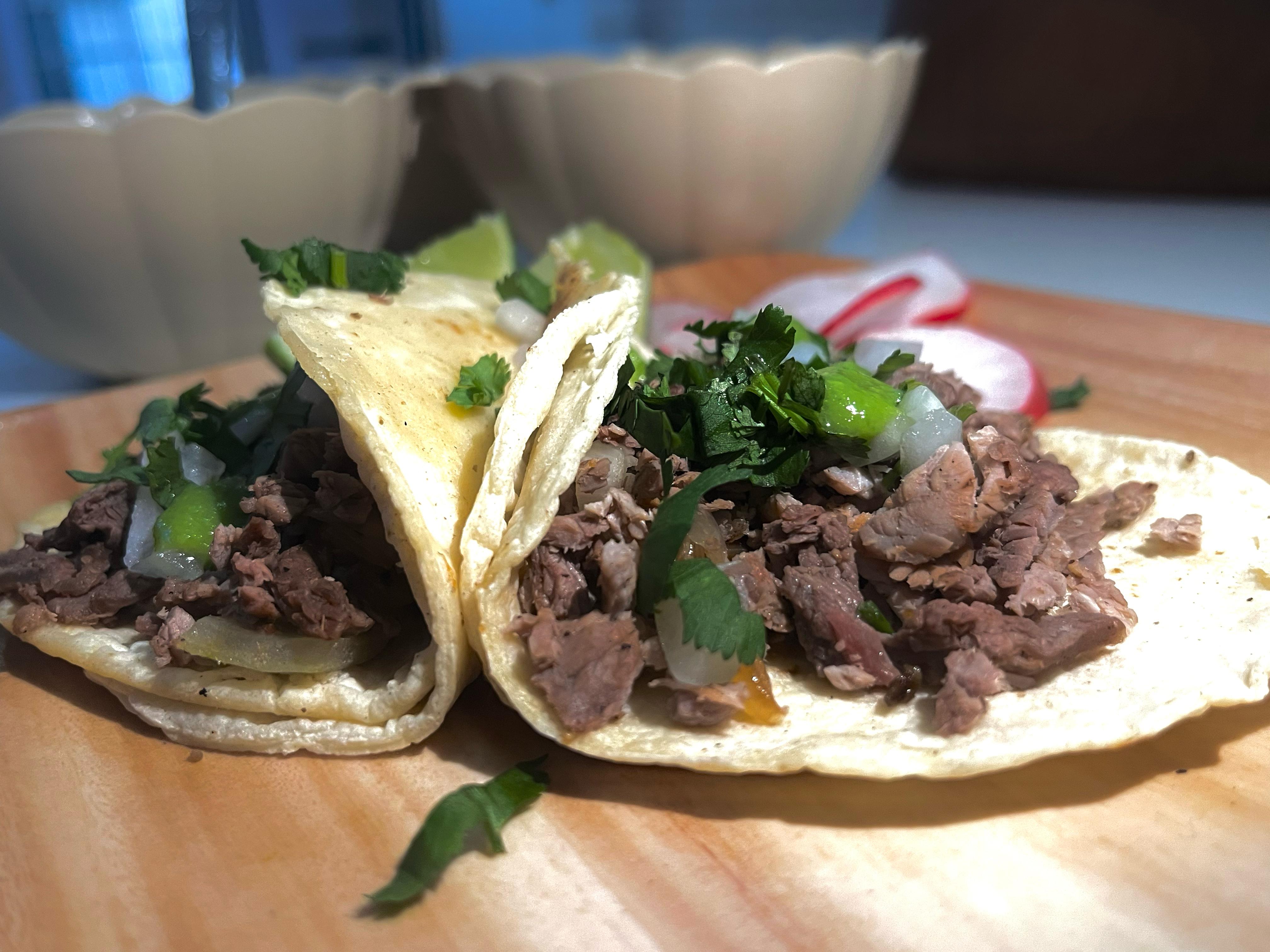 Taco de filete suave y jugoso, preparado al momento para resaltar su sabor auténtico.