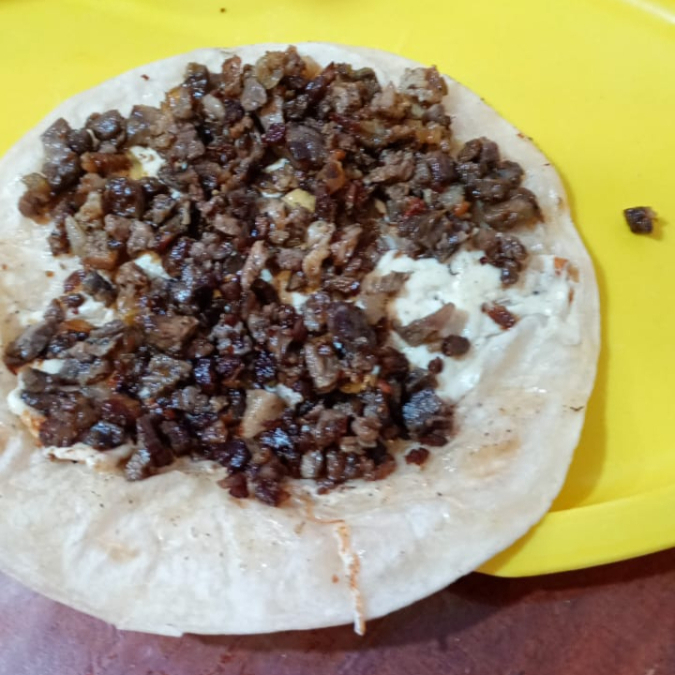 1 pieza con tortilla de arina y carne