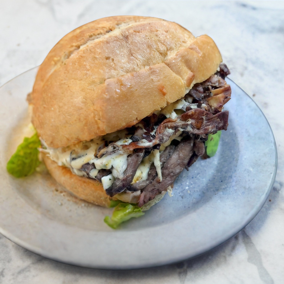 Torta de sirloin 2x1. Deliciosas tortas con frijoles, queso, aguacate, tomate, cebolla y chile jalapeño