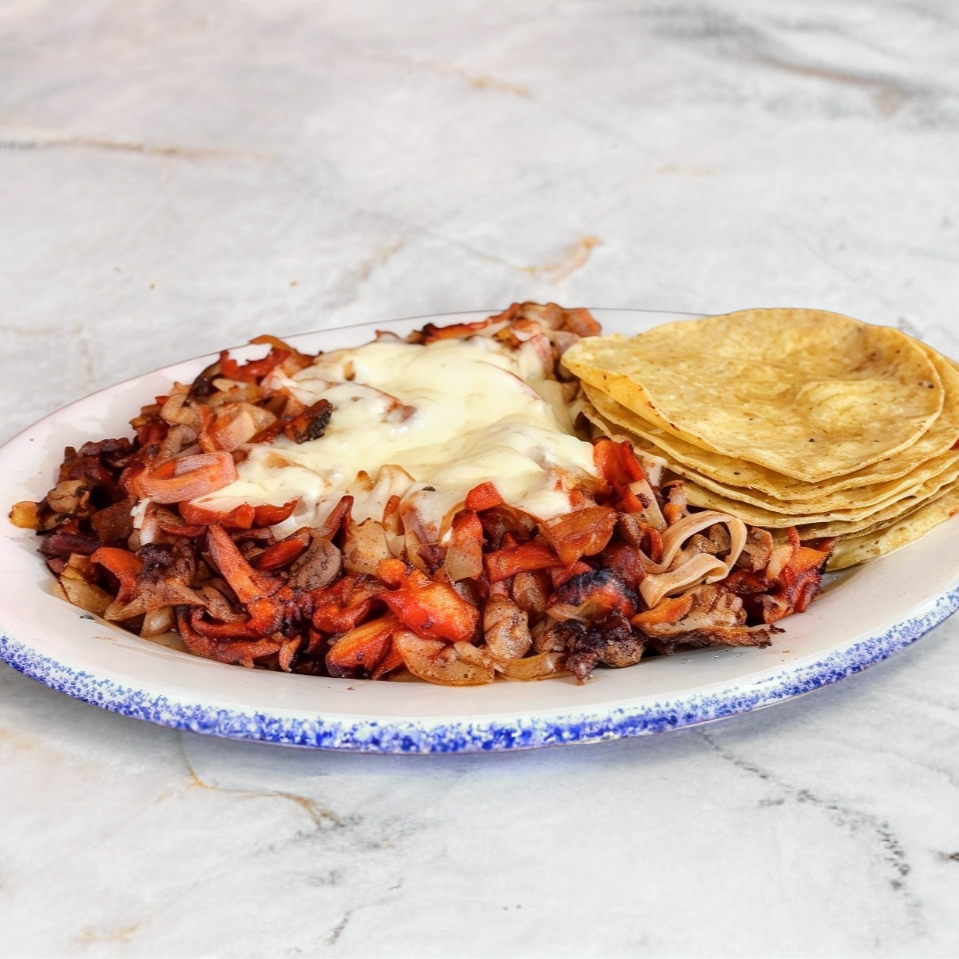Pastor, Sirloin, y Queso Fundido , TORTILLAS Y FRIJOLES CHARROS INDIVIDUAL